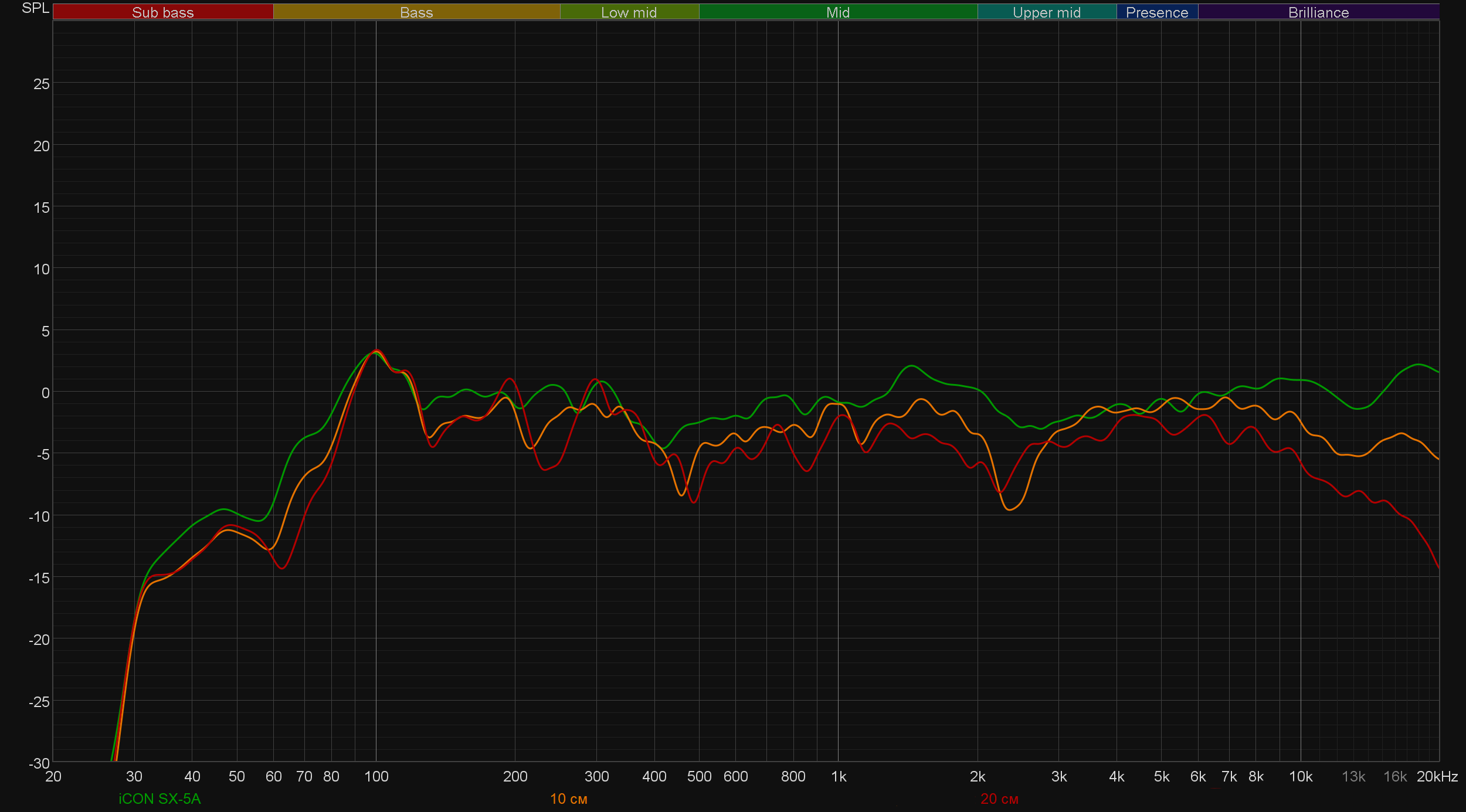 Середина подается детализировано и с хорошей артикуляцией. Да, конечно, график в этой области не идеально ровный, но все же он очень близок к тому, что могут предложить нам многие из мониторов, цена которых за одну штуку сопоставима со стоимостью комплекта из пары iCon SX-5A. С ВЧ-регистром тоже все очень и очень неплохо: он вполне сбалансирован и воспроизводится без каких-либо характерных для него проблем.