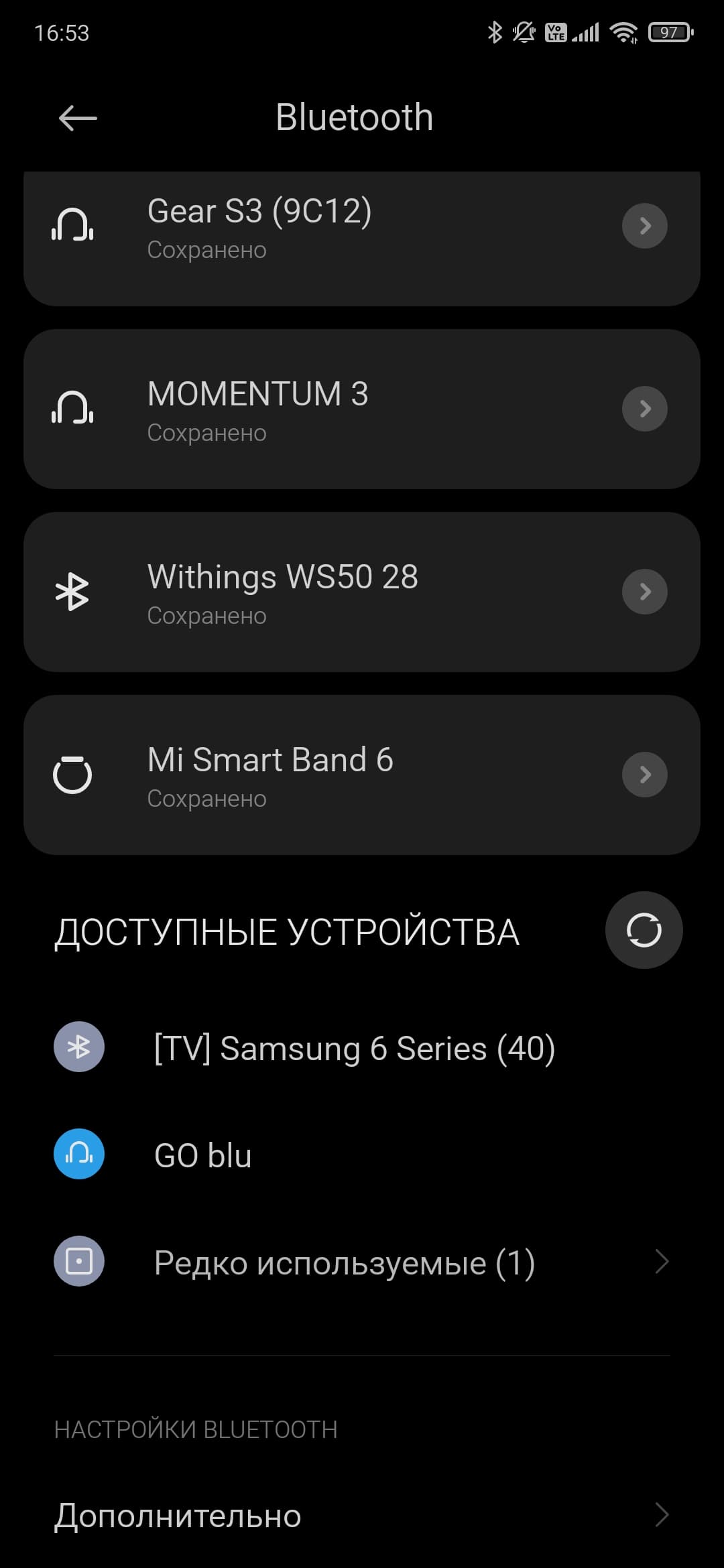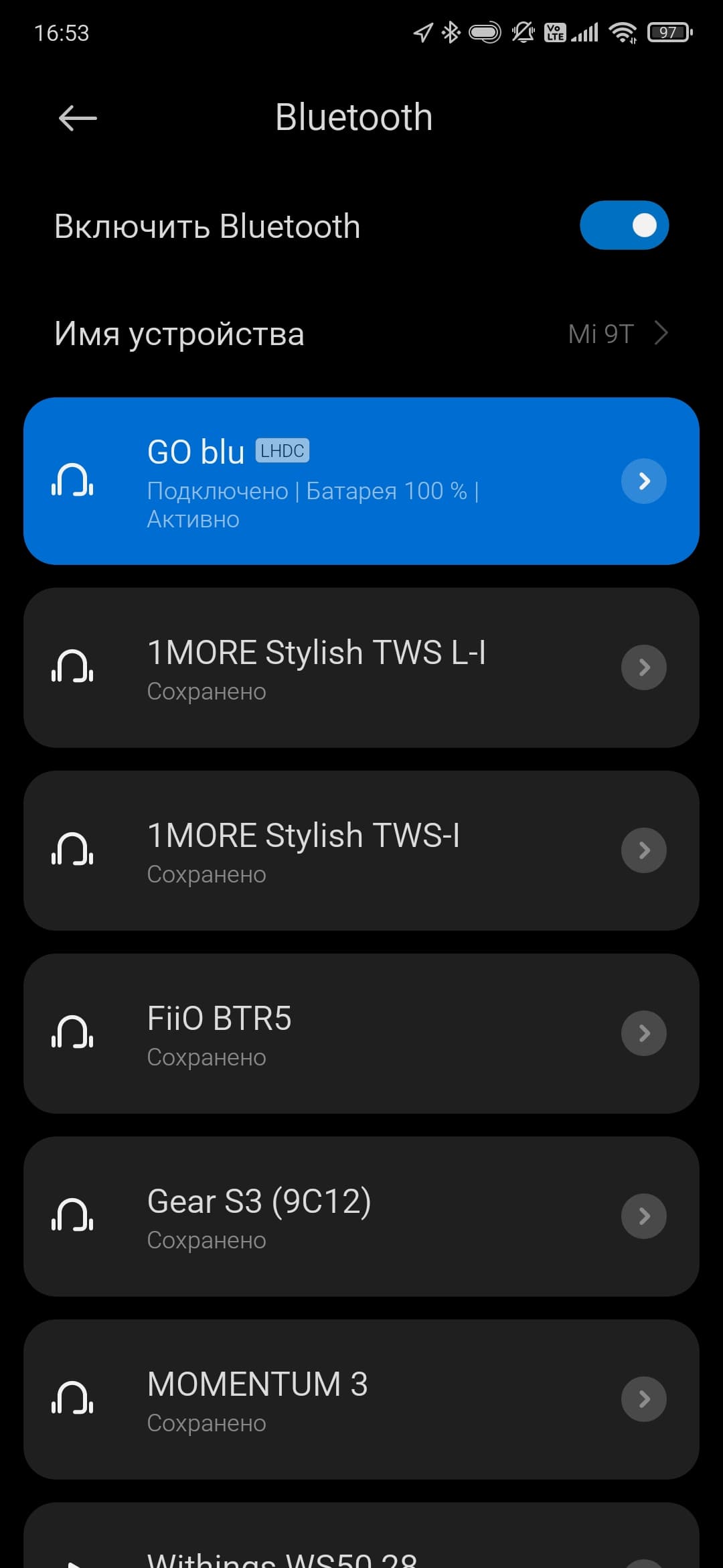 Разговор про подключение начнем с Bluetooth как с потенциально наиболее часто используемого, его наличие — одна из основных «фишек» устройства. Тут все традиционно просто: после включения Go blu некоторое время ищет «знакомые» источники звука, далее активирует режим сопряжения. Если этого вдруг не произошло, всегда можно воспользоваться клавишей возле регулятора громкости, которую следует нажать и удерживать чуть более 3 секунд. Далее находим наш «цапоусилитель» в соответствующем меню гаджета, да подключаем.