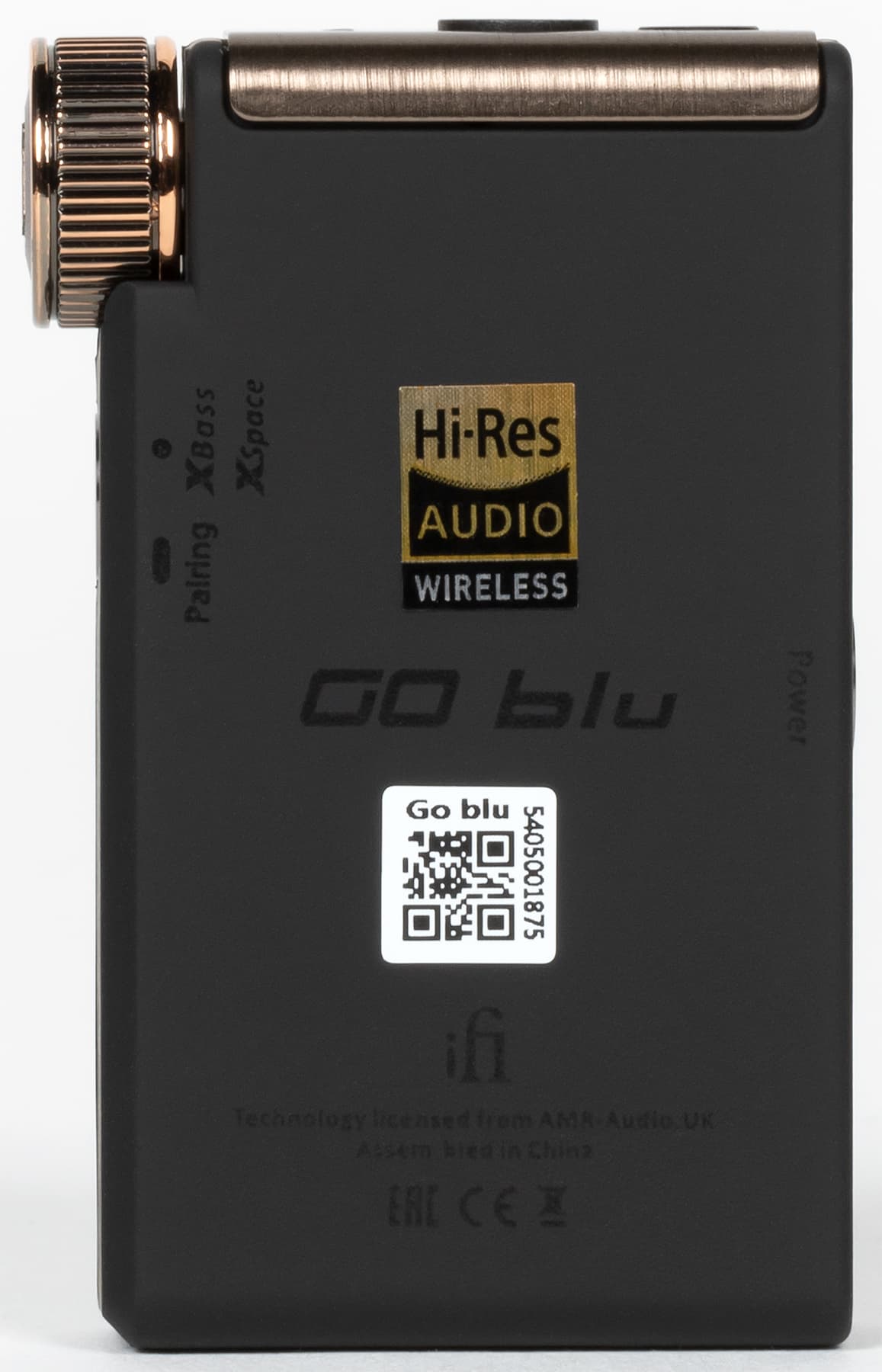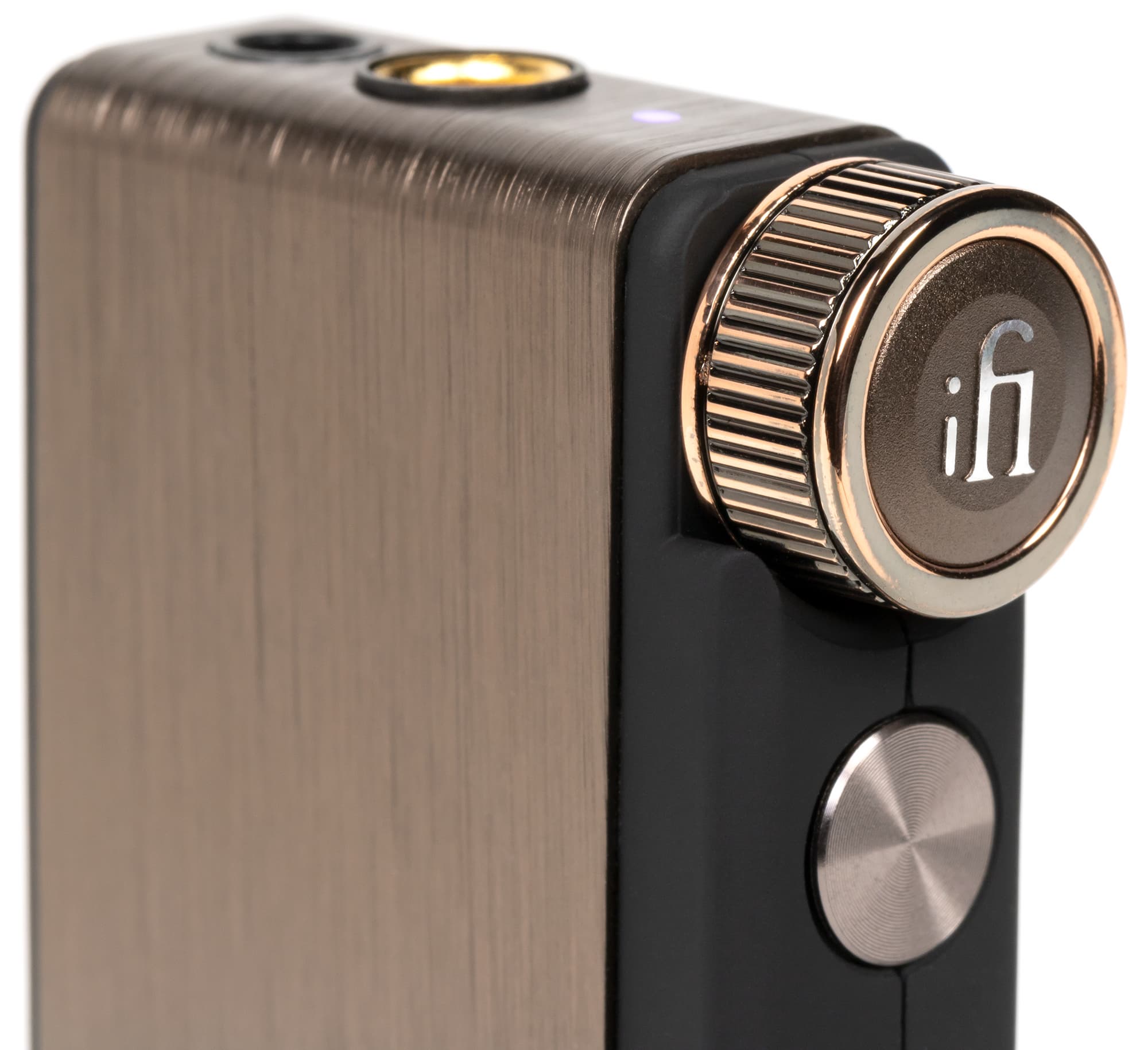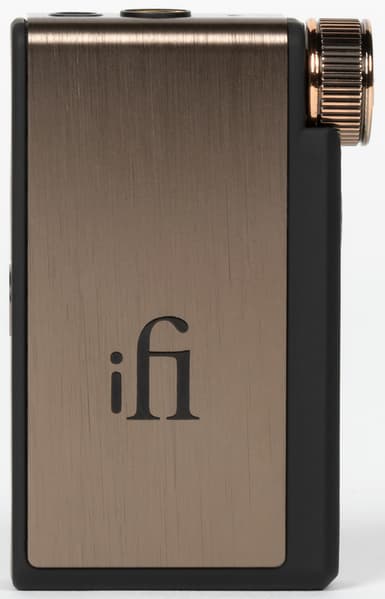 Вернемся к управлению iFi Go blu. Поворотный регулятор на правой стороне корпуса — валкодер без ограничения угла вращения, производящий изменение громкости. Внутри него расположена кнопка, которая отвечает за несколько действий.