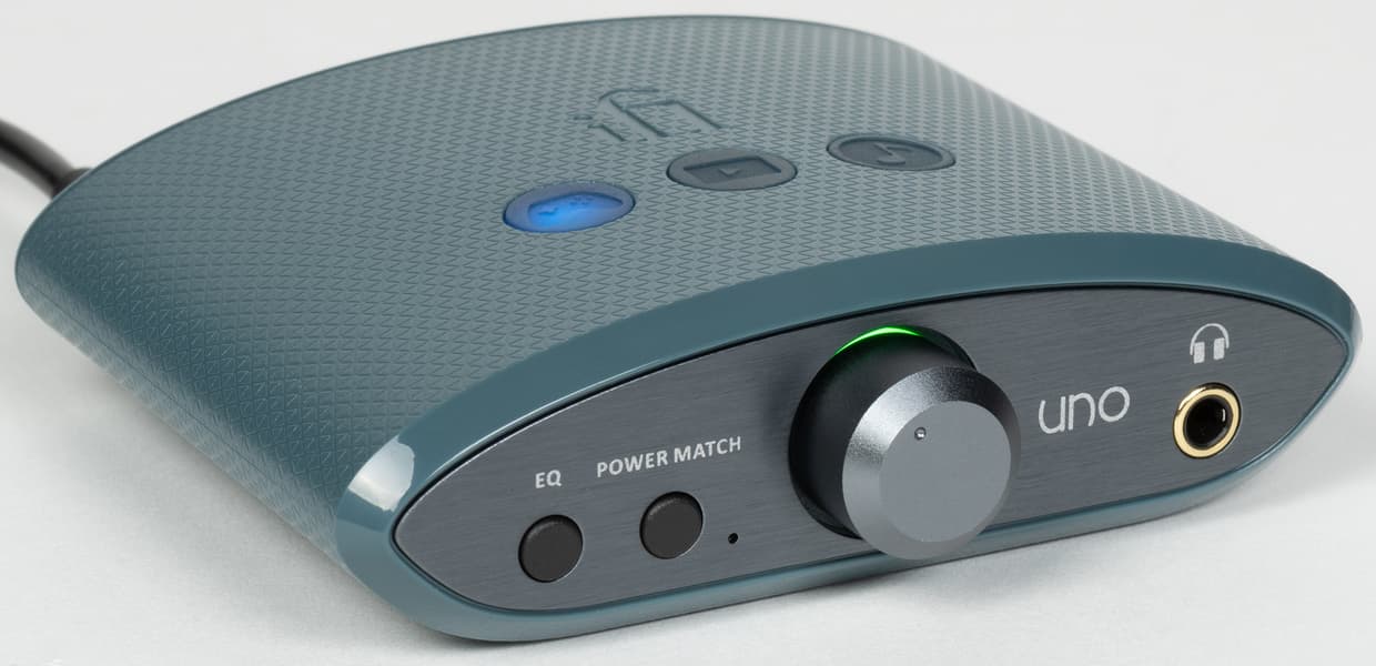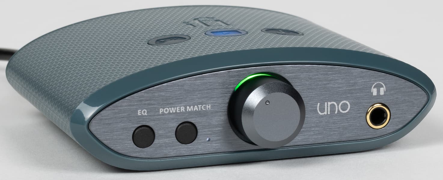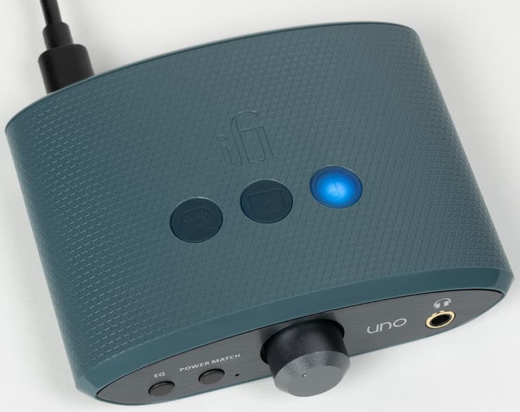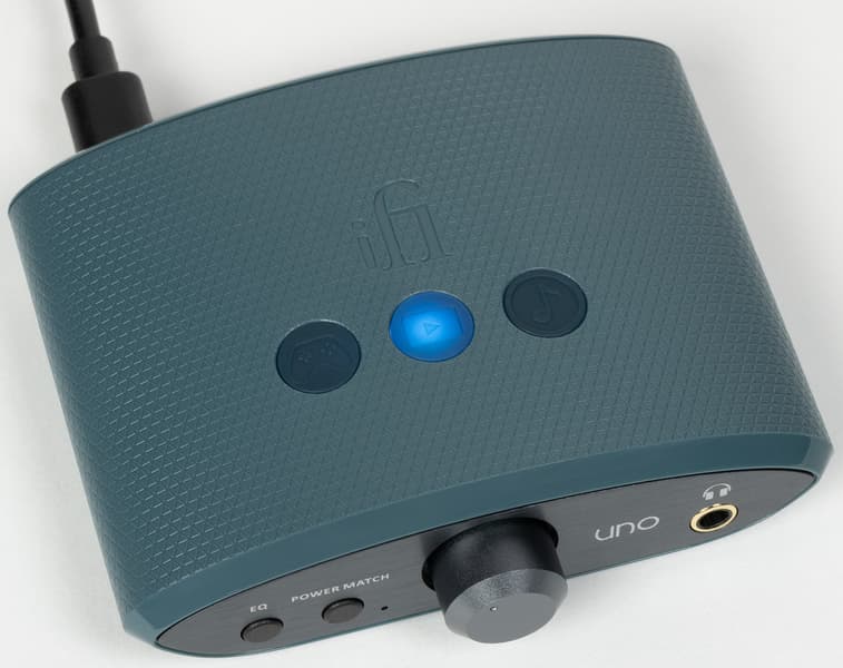 Кнопка Power Match слева от регулятора громкости позволяет повысить коэффициент усиления при использовании «тугих» наушников с высоким импедансом. Мы вновь попробовали подключить к тестируемому устройству все, что оказалось под рукой. Начали как всегда с низкоомных китайских гибридных моделей, потом перешли на полноразмерные Audio-Technica ATH-M50x — все предсказуемо отлично. Далее в ход пошли внутриканальные Soundmagic E80, обладающие довольно высоким для IEM импедансом 64 Ом — тут уже появился повод нажать кнопку Power Match, хотя запаса по громкости было достаточно. Ну закончили мы Beyerdynamic DT 990 Pro с импедансом 250 Ом, которые усилитель вполне «раскачал», но все же не смог полноценно раскрыть. Однако надо заметить, что высокоомные наушники — удел профессионалов и «продвинутых» любителей звука, которые явно не являются целевой аудиторией iFi Uno.