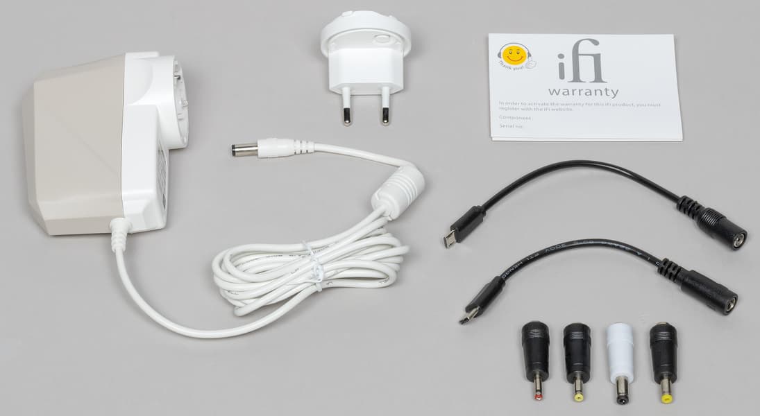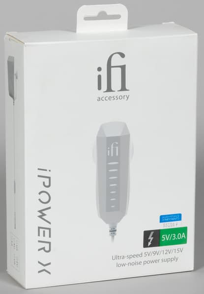 Существуют четыре версии, отличающихся выходным напряжением: 5, 9, 12 и 15 В. У нас была пятивольтовая. Коробка скромная, но симпатичная — с логотипом и изображением устройства на лицевой поверхности. Надпись «Audiophile Components» сразу дает понять: все серьезно.