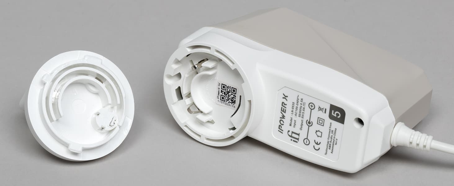 Съемная вилка в комплекте одна, какая именно — зависит от страны продажи. Система крепления при этом на редкость хорошо продумана, монтаж и демонтаж происходит максимально легко.