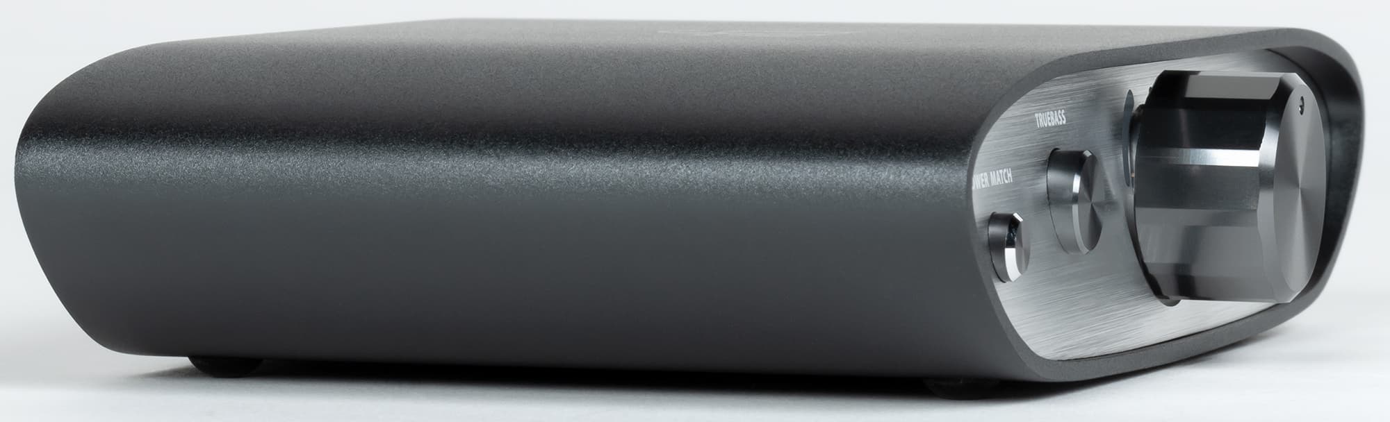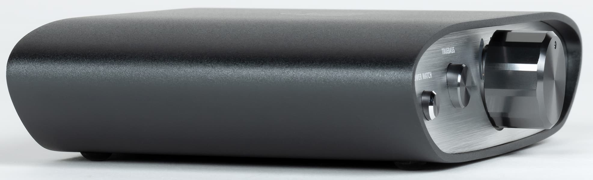 На передней панели слева размещена кнопка режима Power Match и маленький индикатор включения. При его активации на выходе для наушников повышается коэффициент усиления. Проще говоря, если вы слушаете внутриканальные решения с невысоким импедансом — имеет смысл выключить режим. А при подключении «тугих» полноразмерных наушников его нужно задействовать для получения приемлемого уровня громкости.