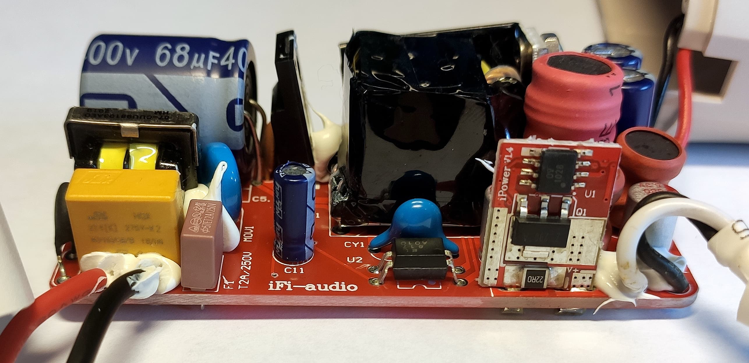 Вместе с iFi Zen DAC в наши руки попал еще один интересный прибор, о котором непременно надо сказать пару слов. Блок питания iFi iPower X, если верить маркетинговым материалам, снижает фоновый шум, создаваемый электросетью. При этом, по словам разработчиков, используется технология активного подавления, основанная на том же принципе, что и в наушниках — борьба с шумом происходит путем генерации идентичного ему сигнала, но в противофазе.