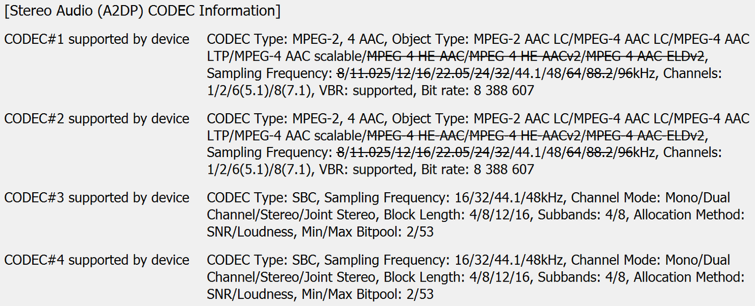 | Поддерживаемые кодеки | SBC | SBC, AAC |