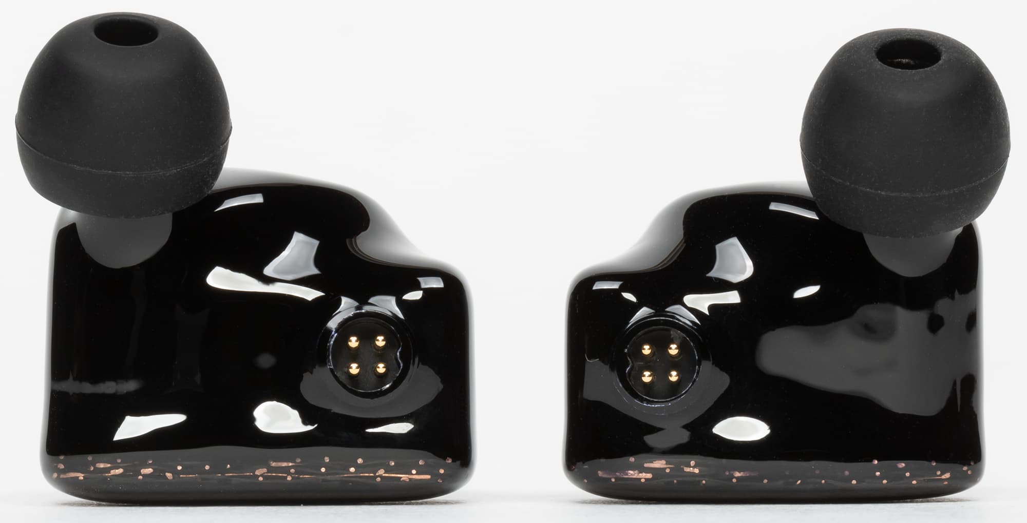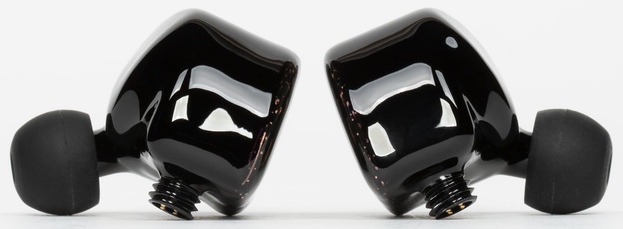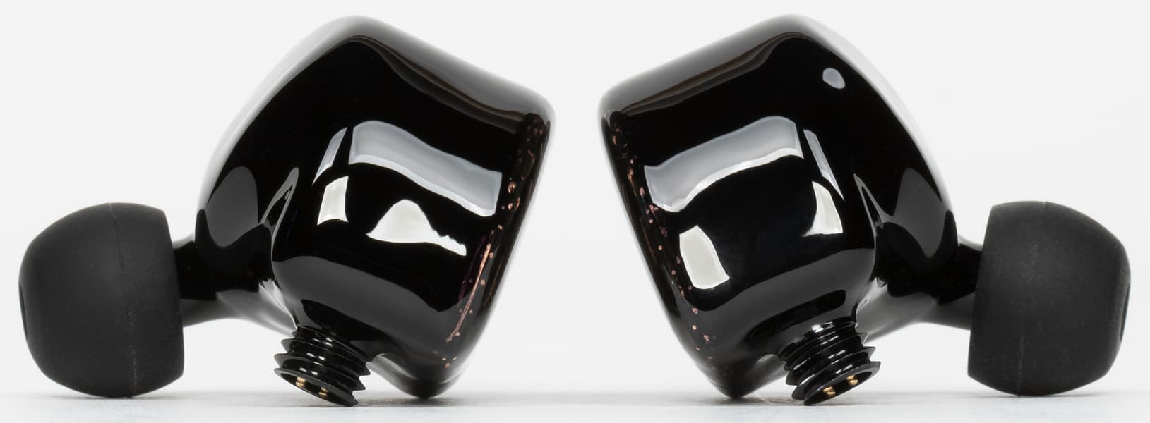 ВЧ-диапазон (от 3 кГц до 20 кГц) воспроизводят четыре арматурных драйвера Quad Balanced Armature. В ухо слушателя звук поступает с помощью технологии FraqPhase — через три раздельных трубки разной длины. Внешне наушники при этом выглядят довольно оригинально, хоть и не слишком броско.