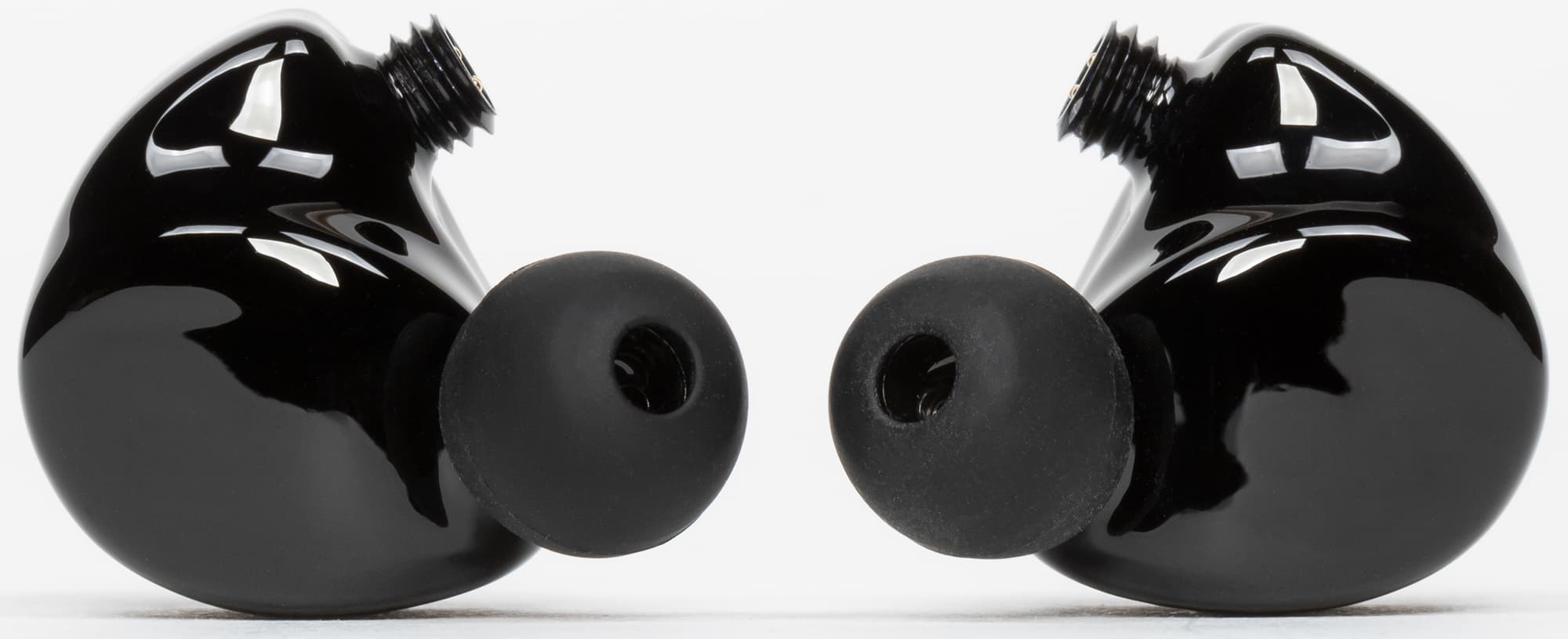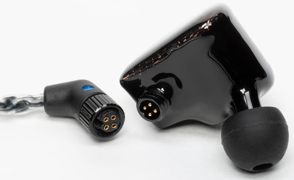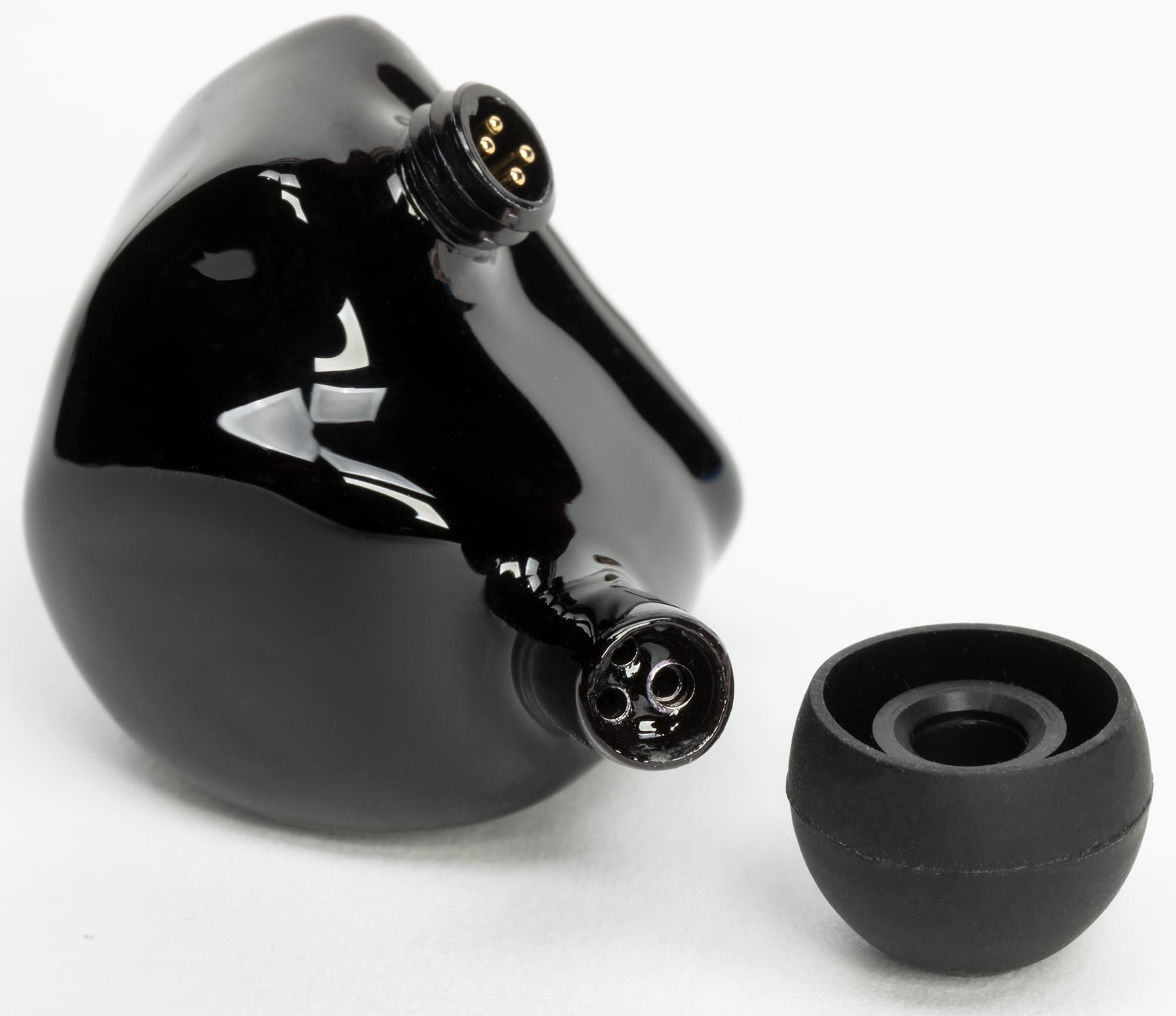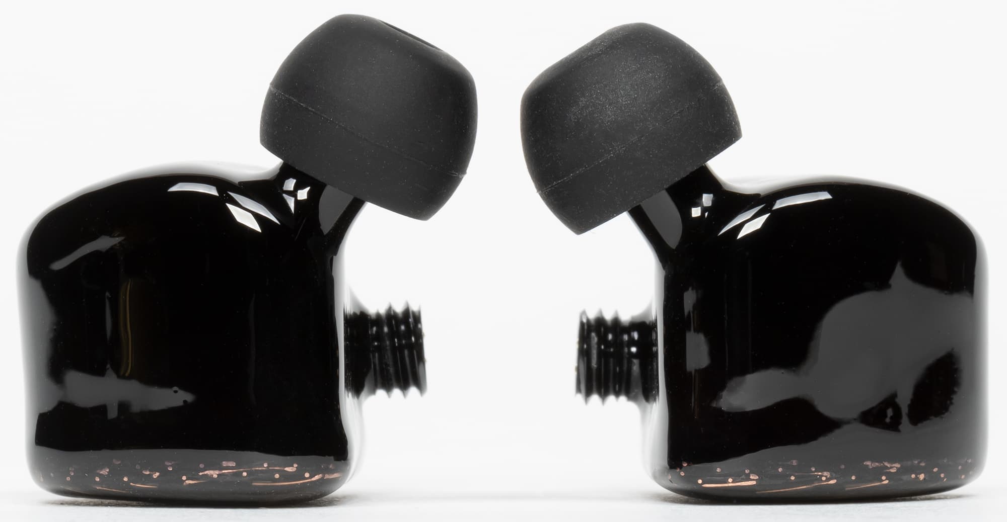 ВЧ-диапазон (от 3 кГц до 20 кГц) воспроизводят четыре арматурных драйвера Quad Balanced Armature. В ухо слушателя звук поступает с помощью технологии FraqPhase — через три раздельных трубки разной длины. Внешне наушники при этом выглядят довольно оригинально, хоть и не слишком броско.