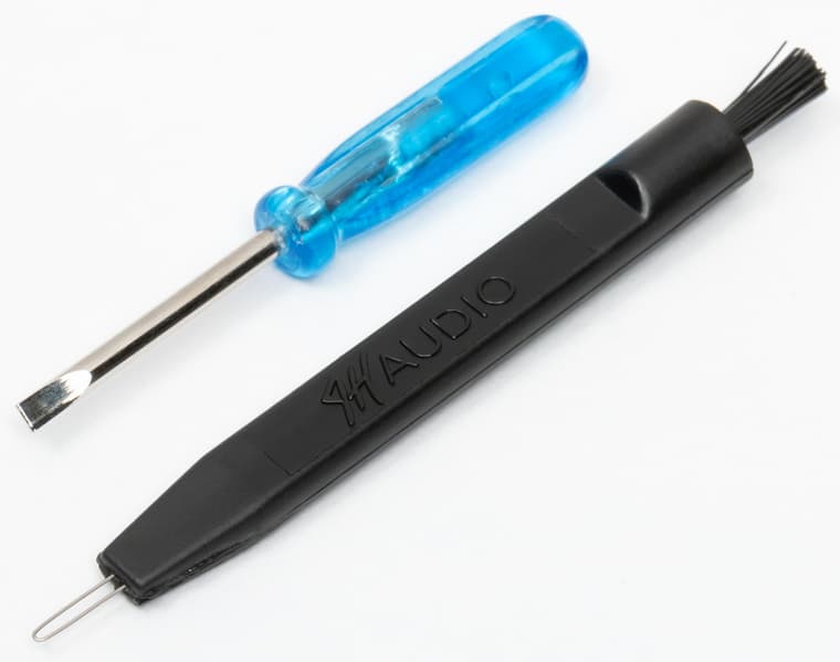 Щеточка для очистки отверстий звуководов и мини-отвертка для вращения регуляторов баса нам уже знакомы по тестированию модели Roxanne. Простенькие, но вполне функциональные — это главное. Отвертку можно закинуть в комплектный кейс и взять с собой, что бывает довольно удобно.