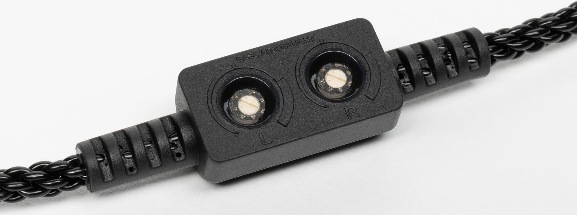 Немного выше штекера расположен пульт для регулировки баса — отдельно для левого и правого каналов. По заявлению производителя, у обновленной модели он стал на 43% компактнее. Его размеры — 25×11 мм.