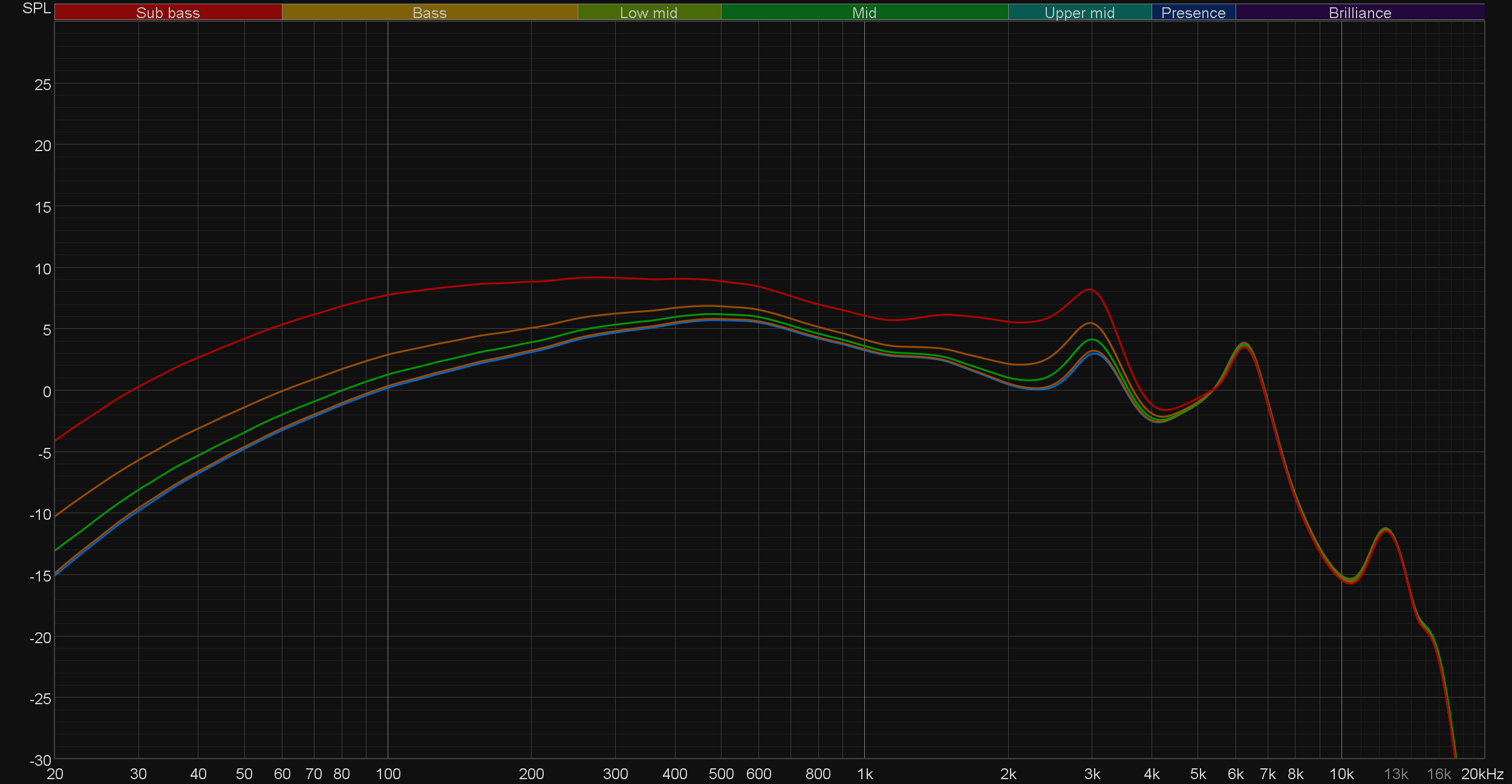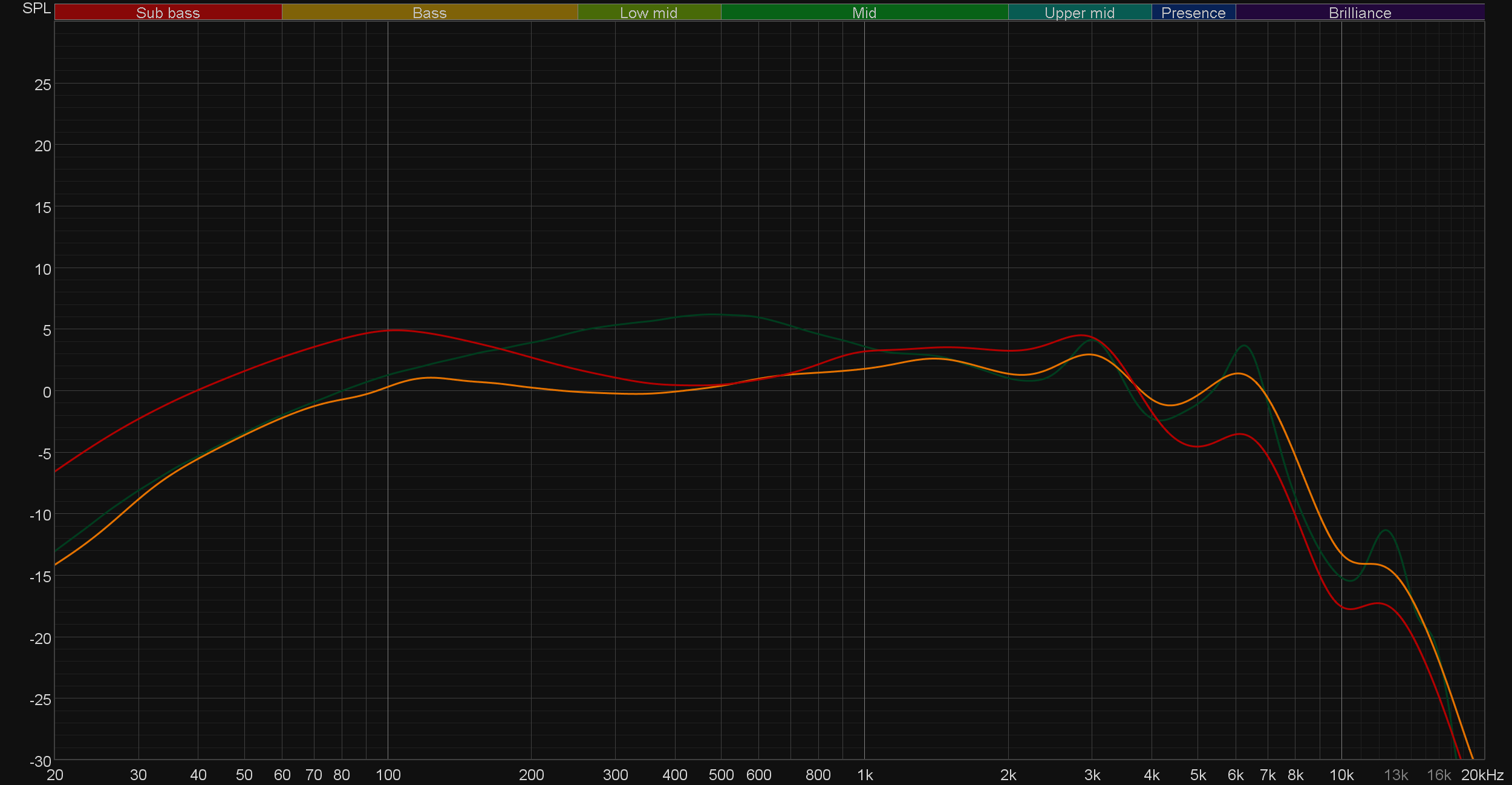 Ощутимый акцент на нижней части среднечастотного диапазона, подчеркнутые верхние частоты — все прекрасно заметно. На графике перепады кажутся довольно выраженными, на деле все звучит вполне сбалансированно. Ну и главное, о чем стоит непременно упомянуть — это то, что JH Audio Roxanne прекрасно поддаются эквализации. В частности, «горб» в среднечастотном диапазоне легко убирается буквально парой движений.