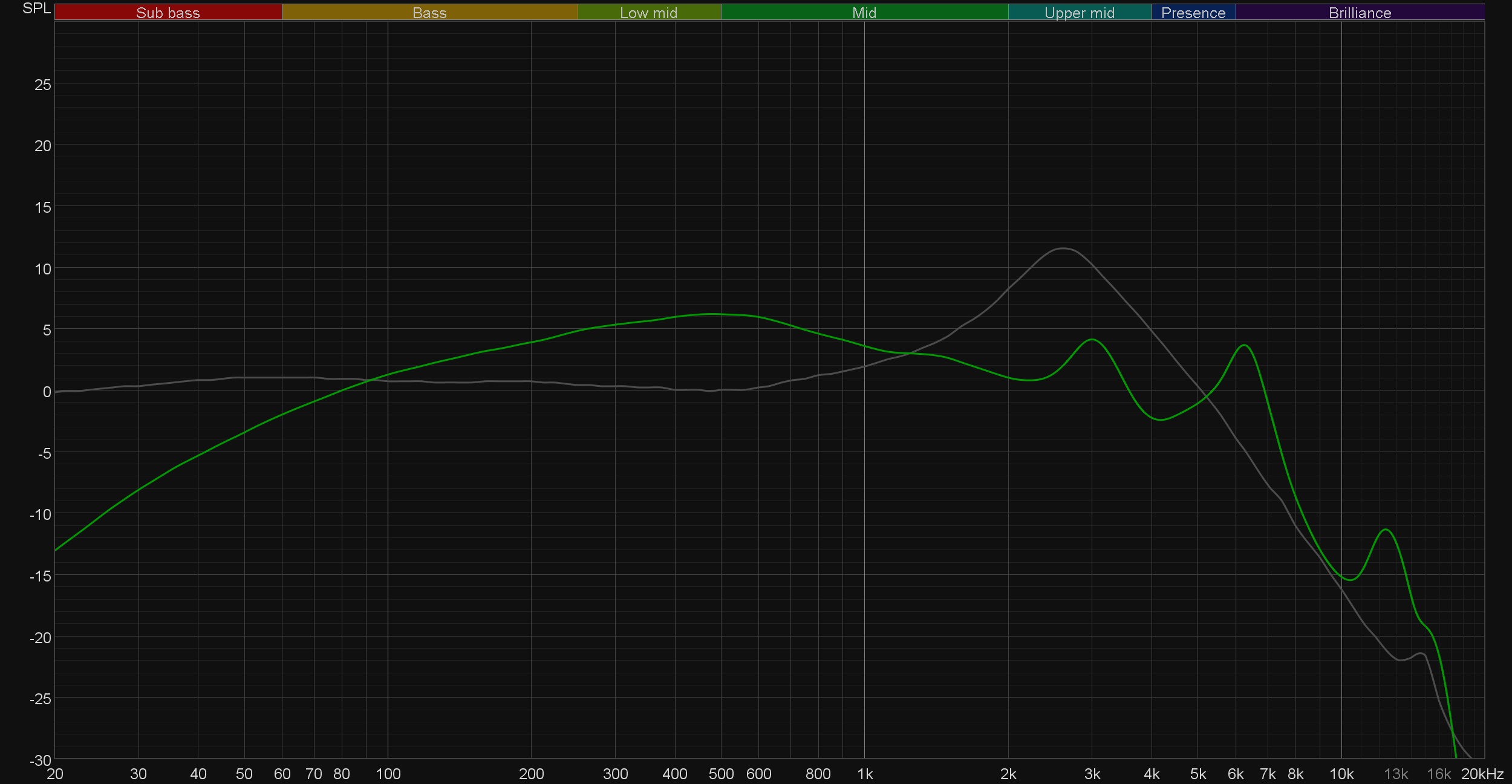 Задача этой кривой — помочь скомпенсировать резонансные явления в имитированном слуховом канале и особенности используемого оборудования, создав «звуковой профиль», максимально корректно иллюстрирующий то, как звучание наушников воспринимается слушателем. Ее можно рассматривать как адаптированный под конкретное устройство аналог так называемой «кривой Хармана», созданной командой Harman International под руководством доктора Шона Олива. Скомпенсируем полученный график АЧХ в соответствии с кривой IDF.
