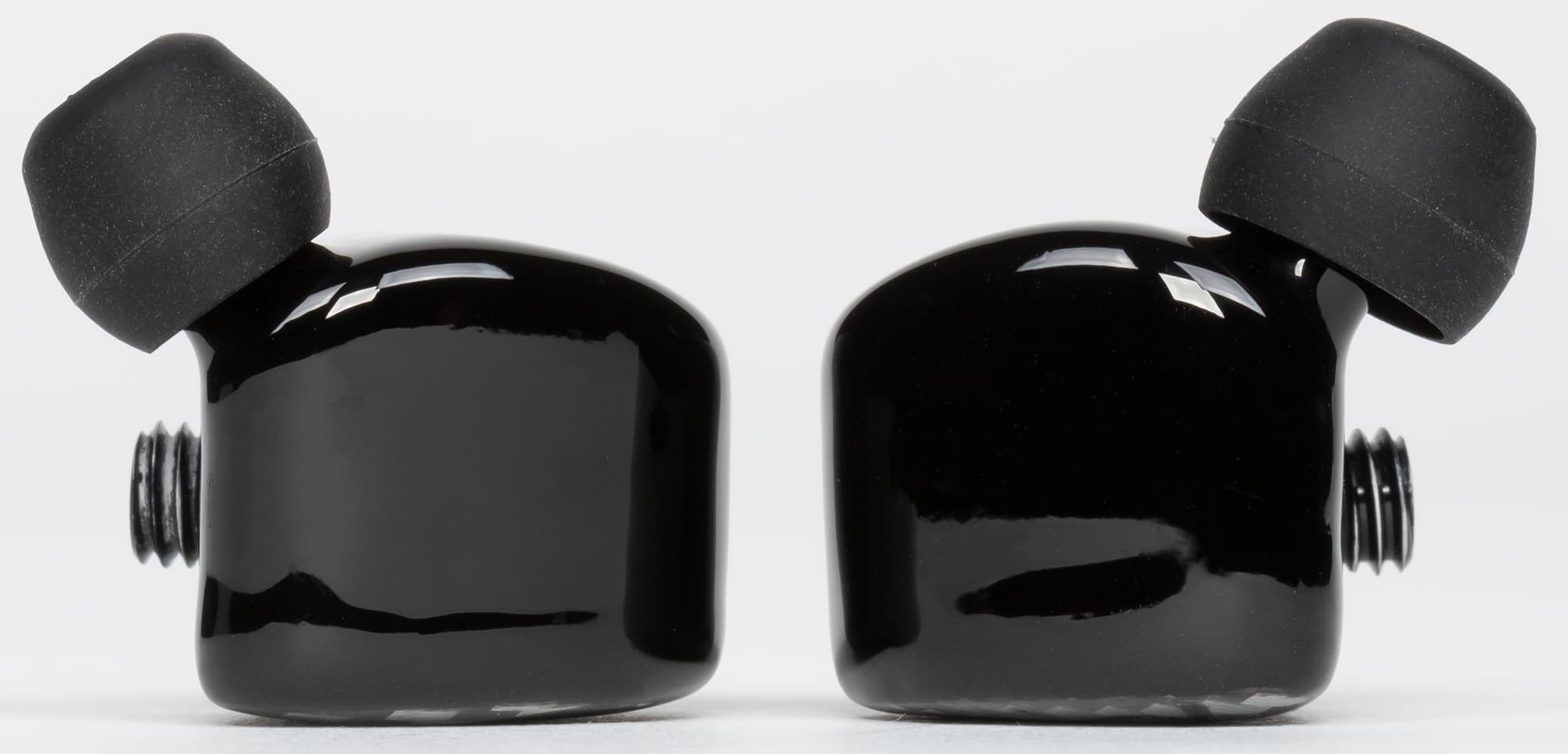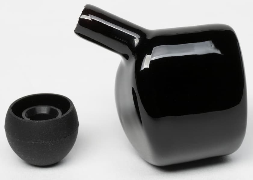 Углубления для крепления амбушюров нет, но при этом держатся они вполне надежно. Диаметр звуковода — 5,5 мм. Насадки с внутренним отверстием порядка 4 мм надеваются на него с заметным усилием. А пластик, несмотря на глянцевую поверхность, обеспечивает хорошее «сцепление» с силиконом.