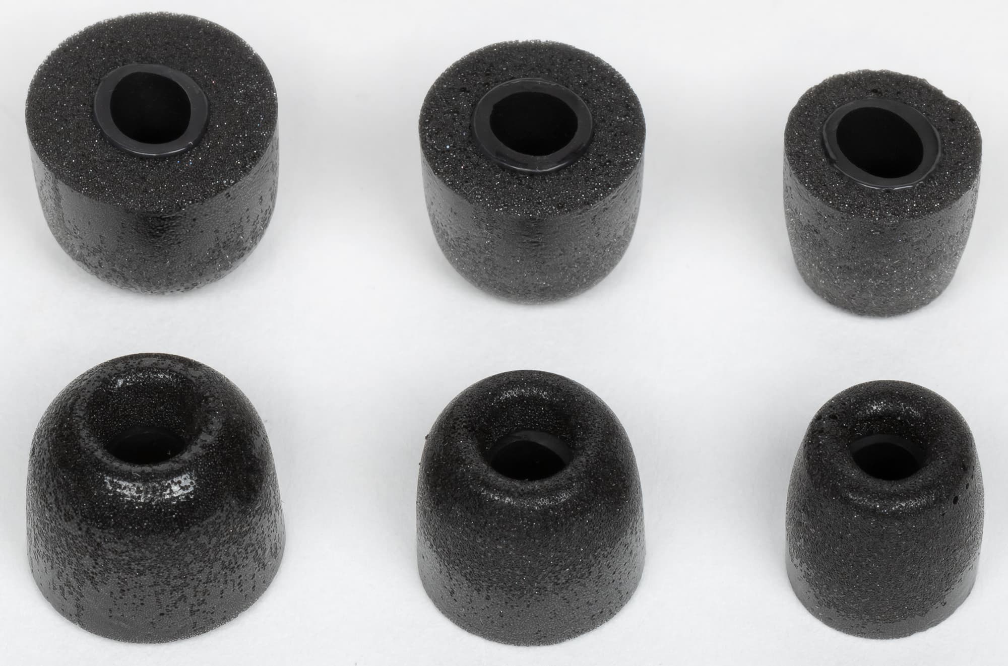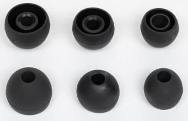 Насадок в комплекте 6 пар — три силиконовых и три из пенного материала. Они стандартные, подобрать замену при желании — не проблема.
