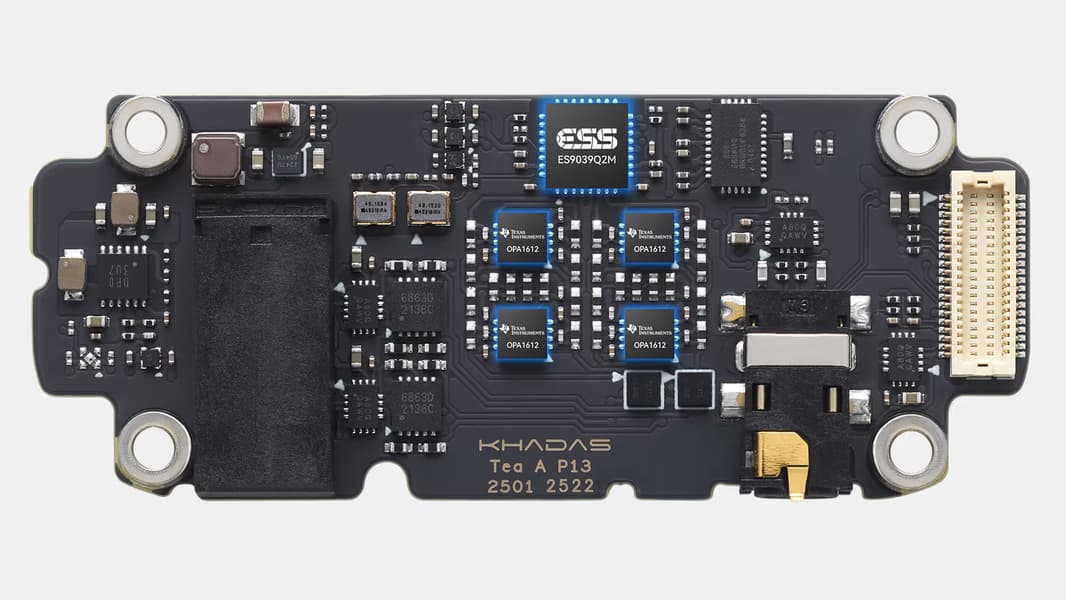 В качестве ЦАПа выступает ESS ES9039Q2M. В тракте используются четыре операционных усилителя TI OPA1612: два отвечают за I/V-преобразование, еще два — за фильтрацию. Громкость регулируется с помощью двух чипов NJU72315. Усиление реализовано на паре Ricore RT6863.