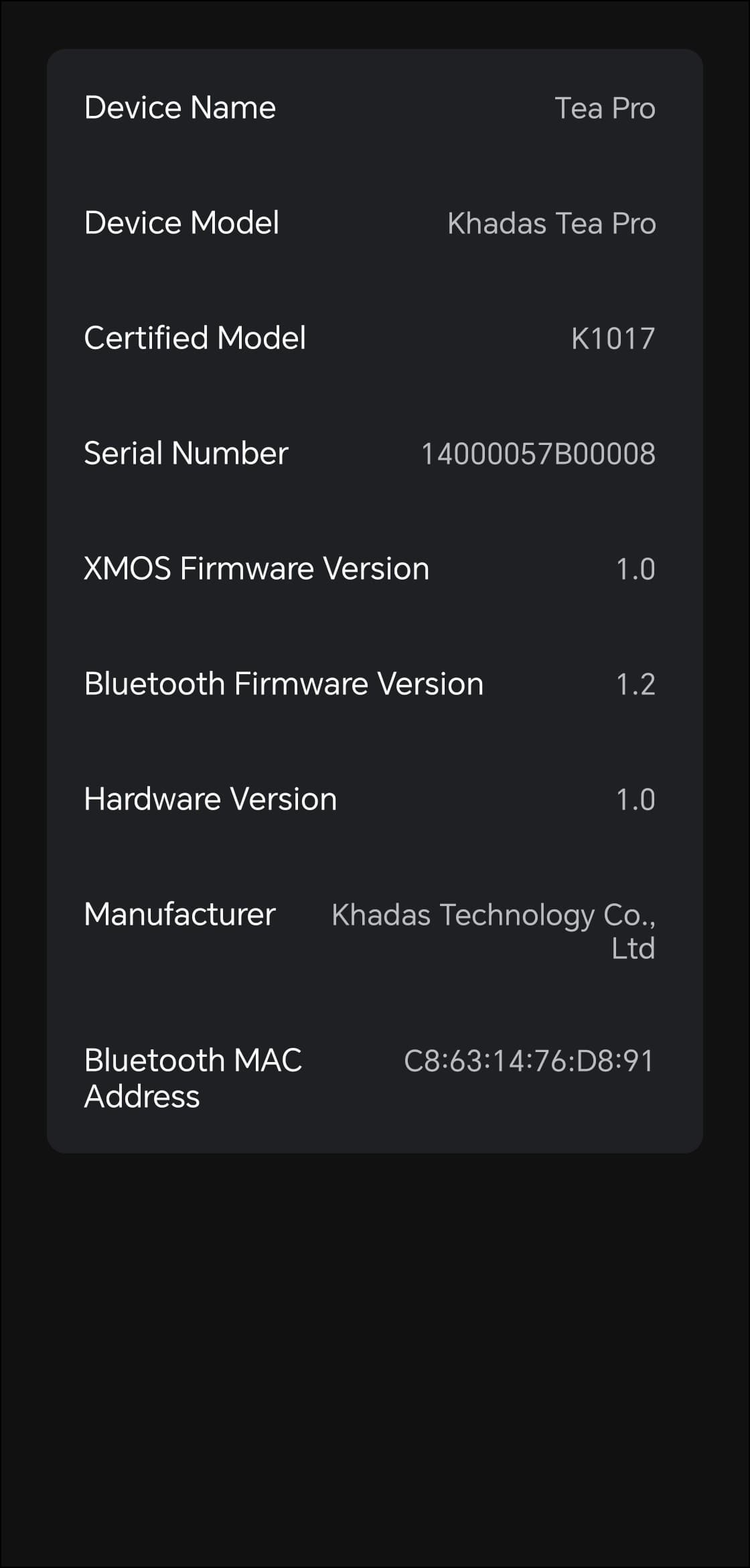 При подключении Khadas Tea Pro к смартфону обнаружился еще один важный момент — устройство поддерживает кодек aptX Lossless. Это часть экосистемы Snapdragon Sound и на сегодняшний день единственный Bluetooth-кодек, рассчитанный на передачу аудио без потерь в пределах CD-качества (16 бит/44,1 кГц). Удивительно, что производитель не упоминает поддержку этого кодека в маркетинговых материалах, ведь речь идет не просто о важной особенности, а об одном из ключевых отличий устройства от конкурентов.