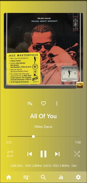 При подключении к Android-смартфону при помощи кабеля Khadas Tea Pro корректно работает с плеерами, поддерживающими режим Bit-perfect, в нашем случае — USB Audio Player. Все форматы воспроизводятся без проблем, включая различные варианты хайрез-аудио.
