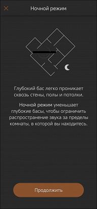 Ночной режим одновременно делает звук потише, убирает бас и «подрезает» ВЧ-диапазон. Смотреть наполненные спецэффектами блокбастеры в таком режиме не имеет особого смысла, а вот если хочется перед сном посмотреть сериал, не разбудив при этом всех вокруг — то, что нужно.