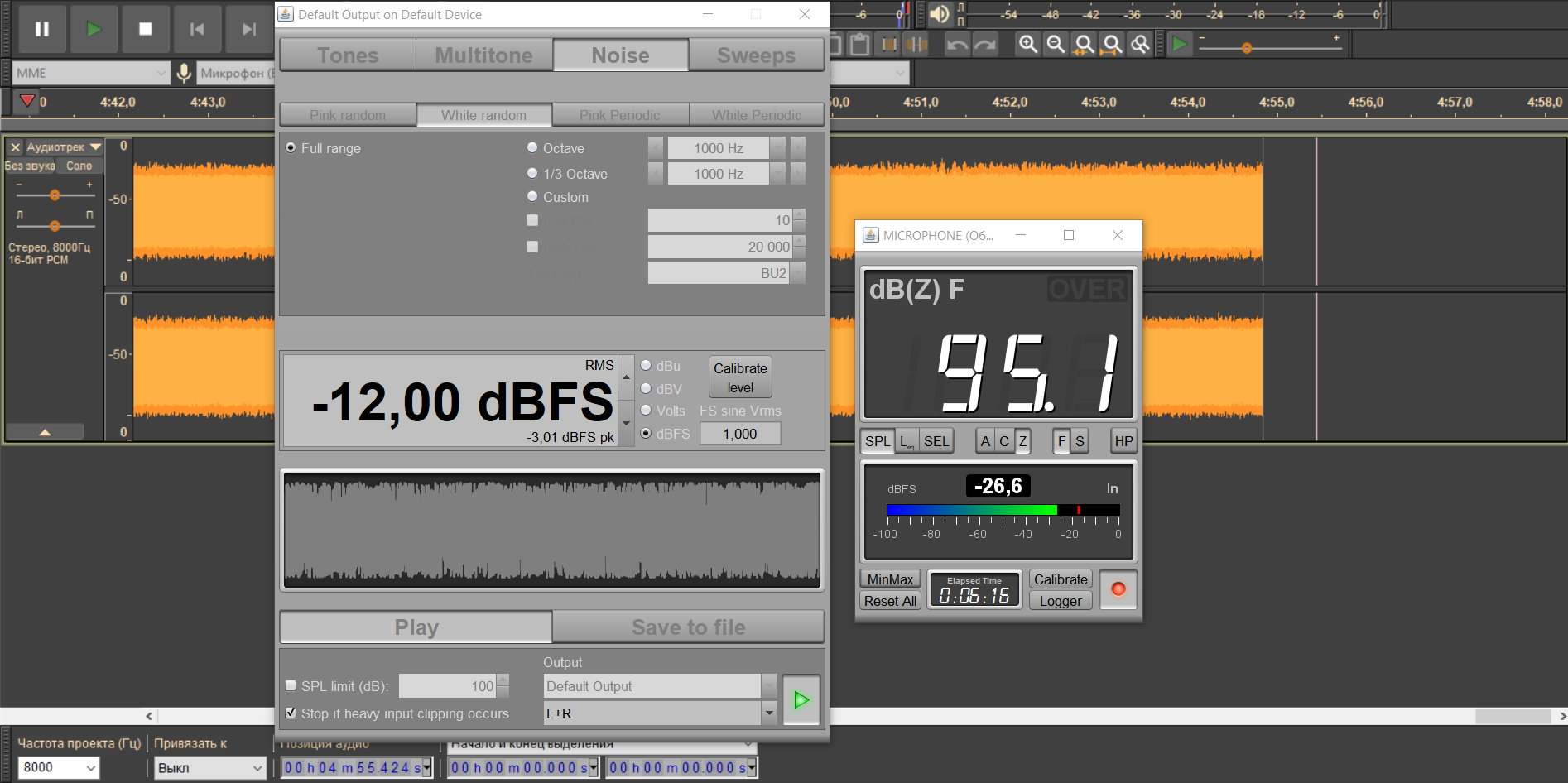 Традиционно напомним нашу методику тестирования автономности беспроводных гарнитур. Безопасным уровнем звукового давления при прослушивании музыки в наушниках считается 75 дБ, но на практике большинство слушателей предпочитает уровень в районе 90-100 дБ. Мы транслируем в наушники белый шум, фиксируя уровень SPL в районе 95 дБ, сразу после старта воспроизведения запускаем запись сигнала с измерительного стенда — по длине получившегося трека легко понять, сколько проработал каждый из наушников.
