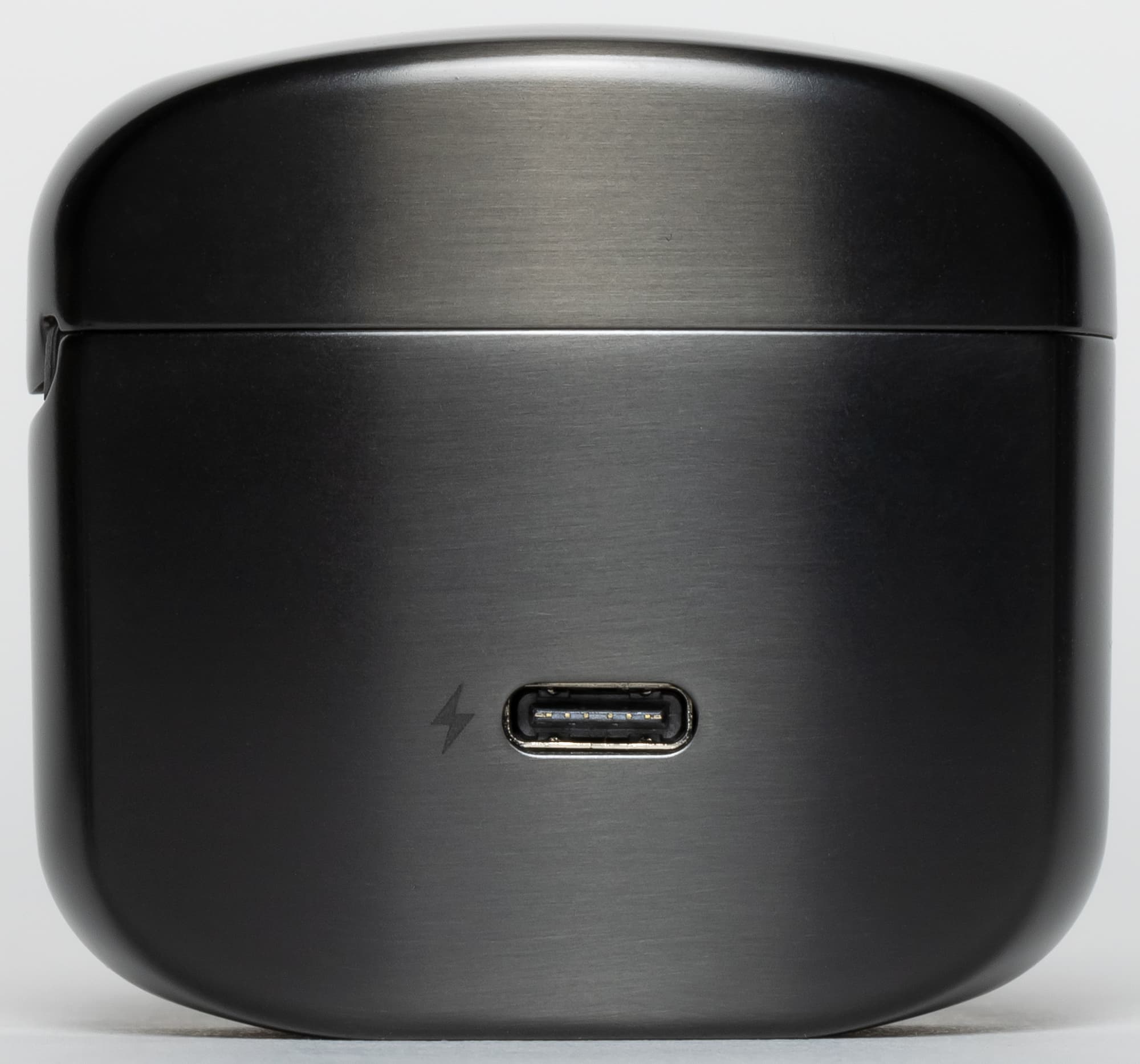 По аналогии с Zippo так и хочется открыть крышку футляра одним движением большого пальца с тем самым резким кликом, который знаком всем обладателям этих зажигалок. Но нет, открывается кейс совсем не так, движение крышки очень мягкое, доводчика нет. Фиксация в открытом положении при этом имеется, пользоваться кейсом вполне удобно. За движение крышки отвечает расположенная на боковой поверхности петля, под крышкой спереди виднеются три светодиода, демонстрирующие уровень зарядки встроенного аккумулятора.