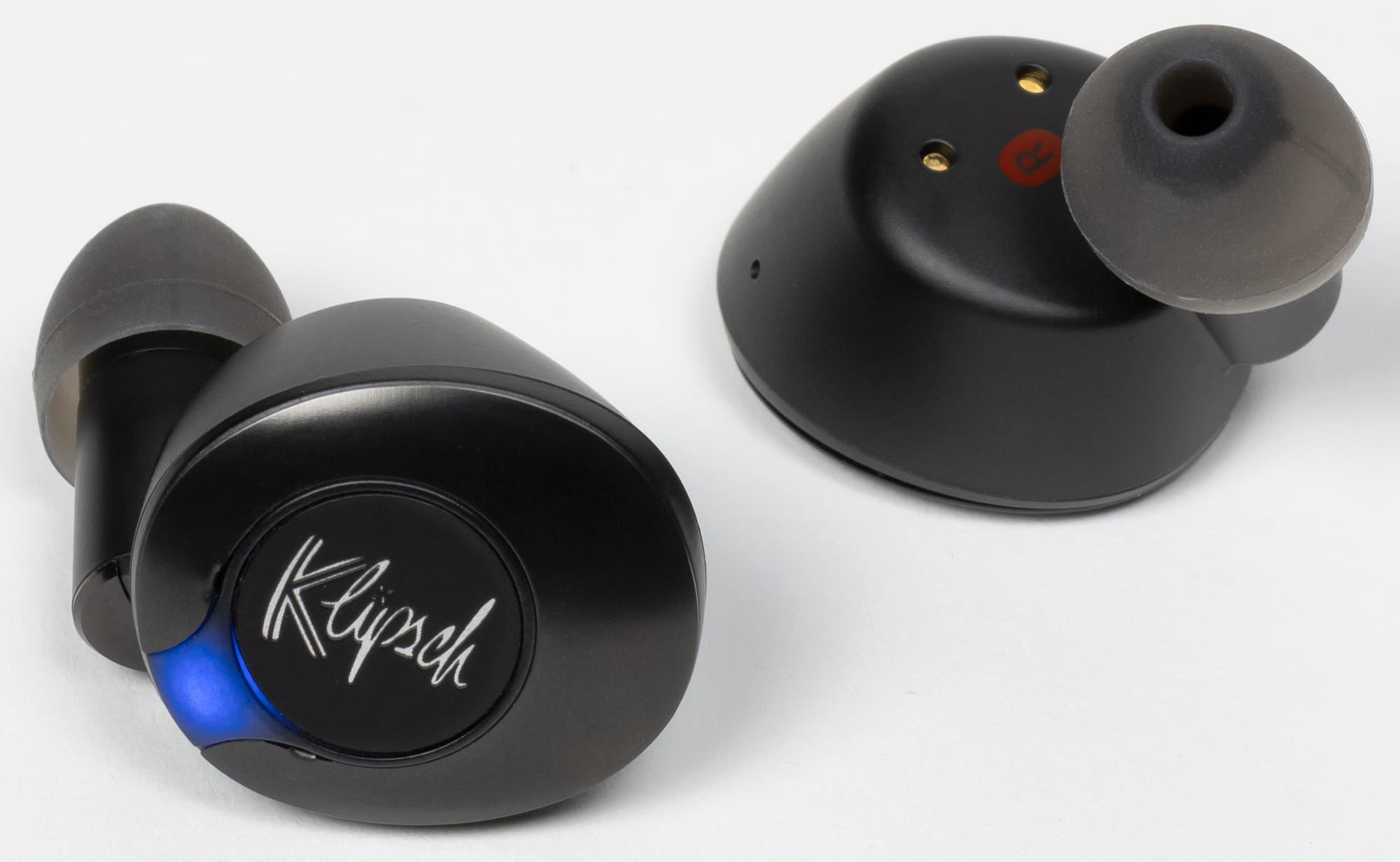 На внутреннюю сторону корпуса нанесены обозначения правого и левого наушников, там же находятся контакты для зарядки. Внутри скрывается динамический драйвер диаметром всего 5 мм. На фоне стремления многих производителей увеличивать размеры излучателей и их количество такое решение выглядит довольно оригинально и даже смело. Однако драйвер в Klipsch сделали не простой, а с новой тонкой диафрагмой, толщина которой не превышает 3 микрометров — проверить, конечно, возможности не было, но у нас нет поводов не доверять производителю. В итоге звук получился весьма и весьма впечатляющий, но не будем забегать вперед.