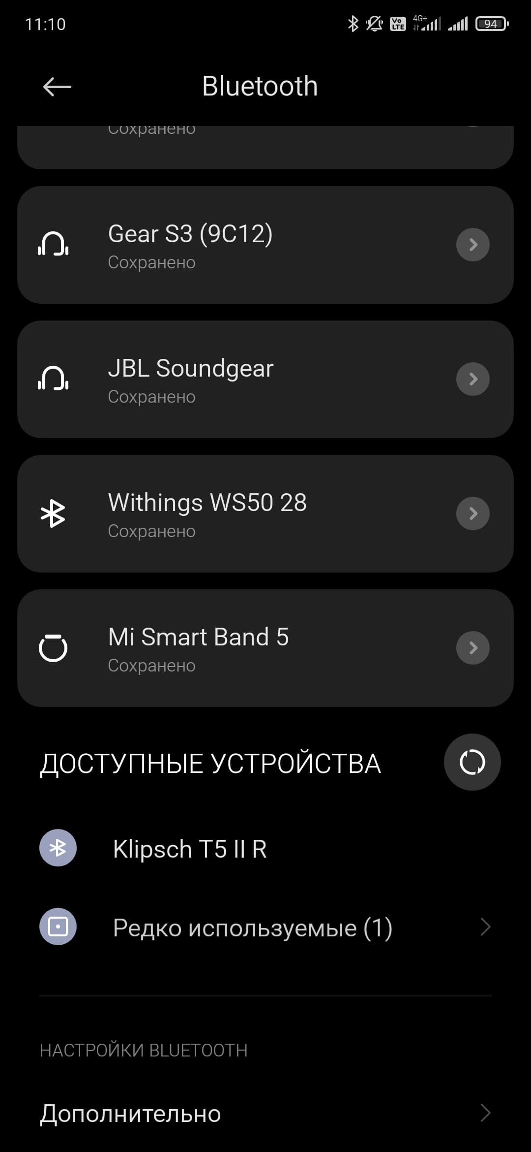 После извлечения из кейса гарнитура несколько секунд пытается подключиться к последнему использовавшемуся источнику, если не получается — активирует режим сопряжения. Если вдруг этого не произошло, можно принудительно запустить процесс, удерживая нажатыми кнопки на обоих наушниках в течение 3 секунд. Далее все как обычно: находим Klipsch T5 II в соответствующем меню гаджета, кликаем, соглашаемся, подключаем…