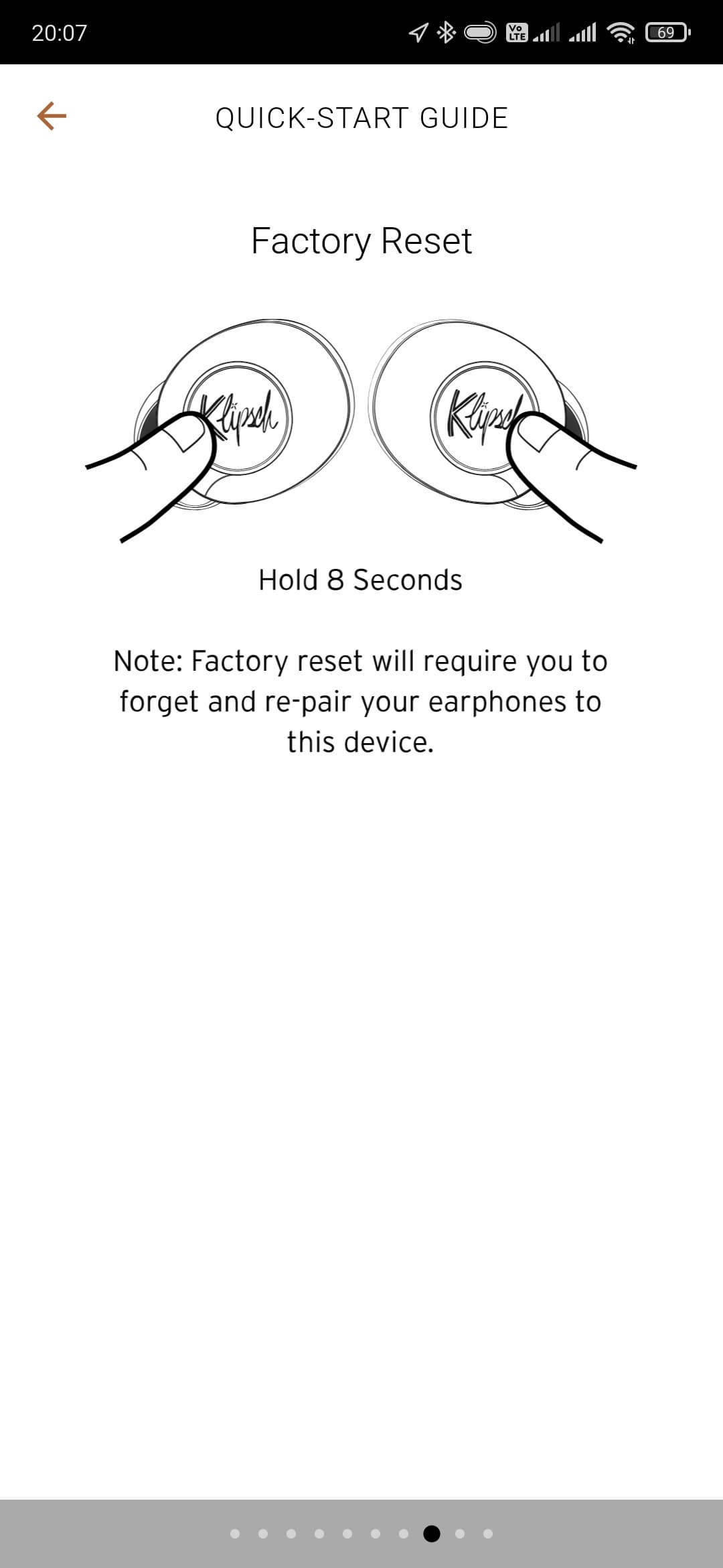 Под занавес Klipsch Connect App предлагает познакомиться с краткой инструкцией, на которую действительно стоит бросить хотя бы беглый взгляд. Она, как и приложение в целом, доступна только на английском языке, но разобраться можно даже с базовым его знанием — картинки помогут. Там есть информация о настройке, управлении, правильном ношении наушников — в общем, много всего полезного.