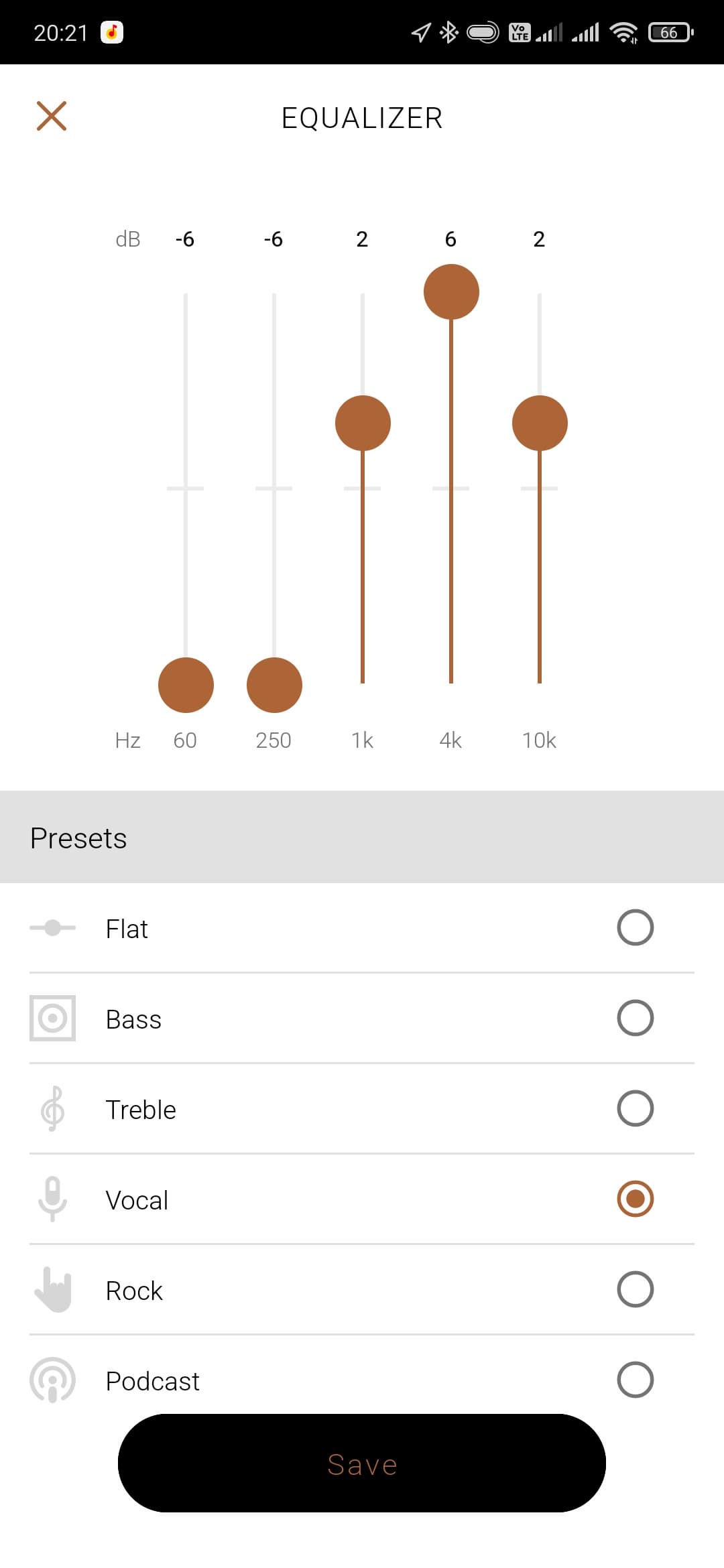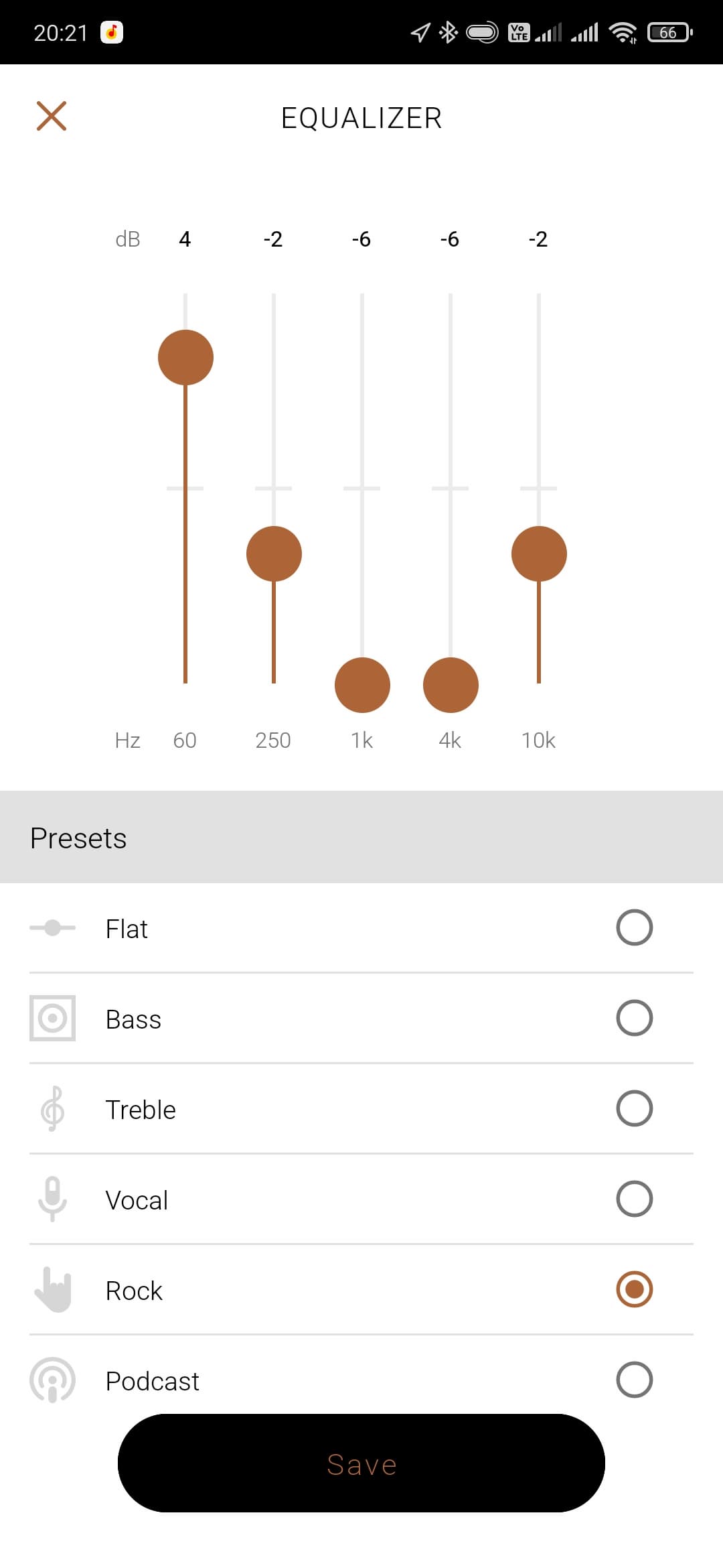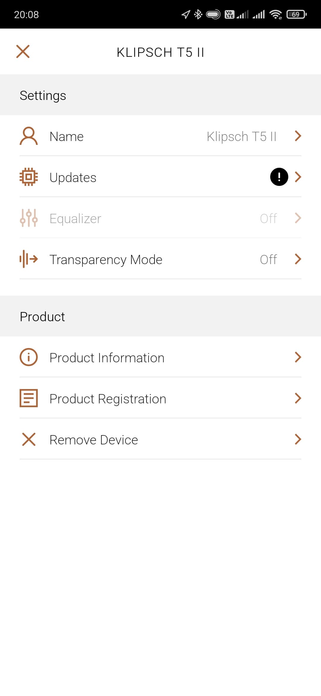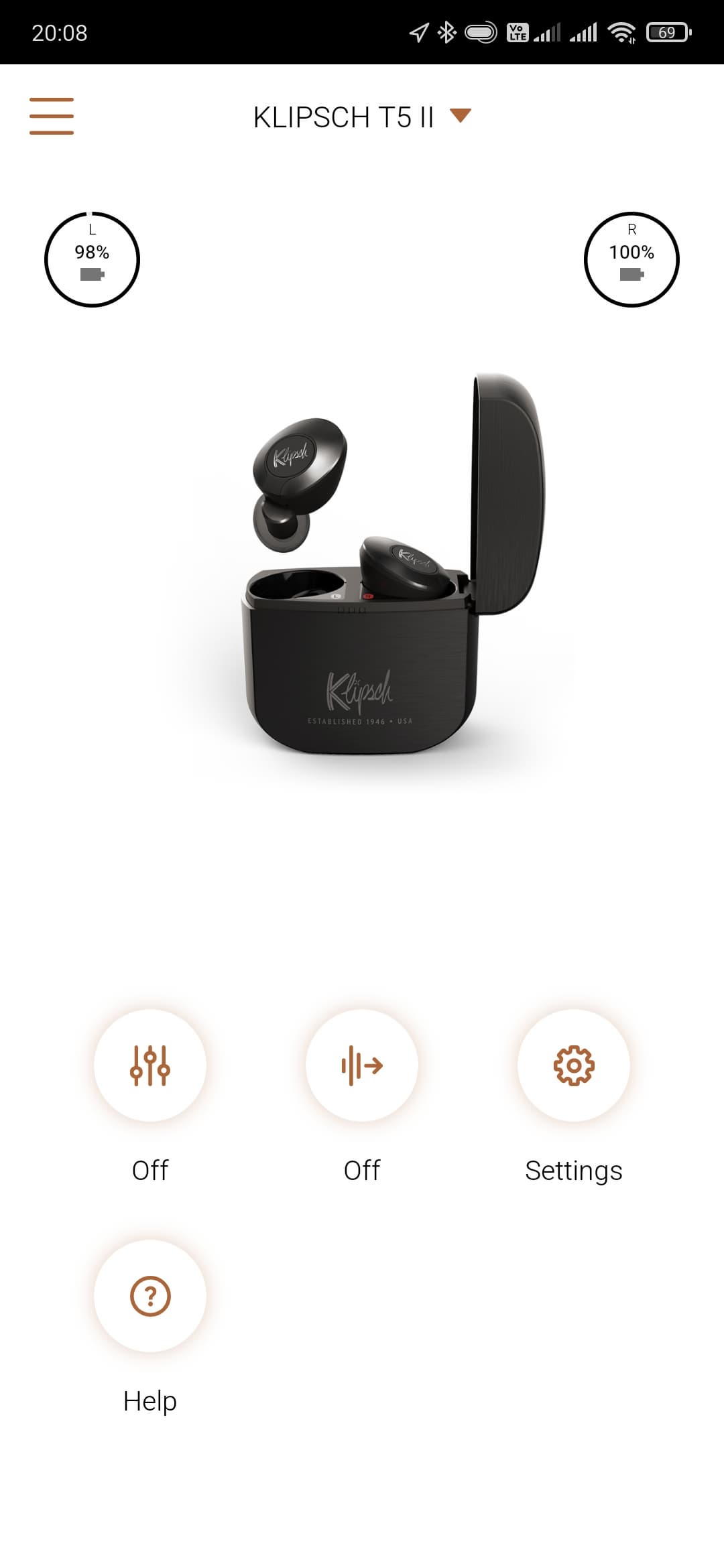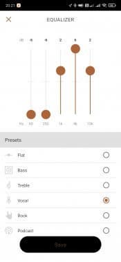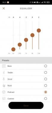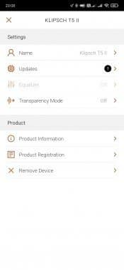Вернемся в приложение Klipsch Connect App. Чуть ли не самая интересная вкладка в нем — это, конечно, пятиполосный эквалайзер c 6 пресетами и возможностью создать индивидуальный. В его работе есть интересный нюанс: изменить настройки нельзя, если не запущено воспроизведение. Иногда это немного неудобно, но в целом на комфорт использования влияет мало. В любом случае наличие полноценного эквалайзера у наушников, ориентированных на качество звучания — это очень хорошо и правильно.