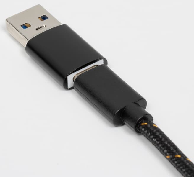 Соединение переходника с кабелем происходит с приятным усилием и ощутимым кликом, крепление надежное, хоть и с небольшим люфтом.