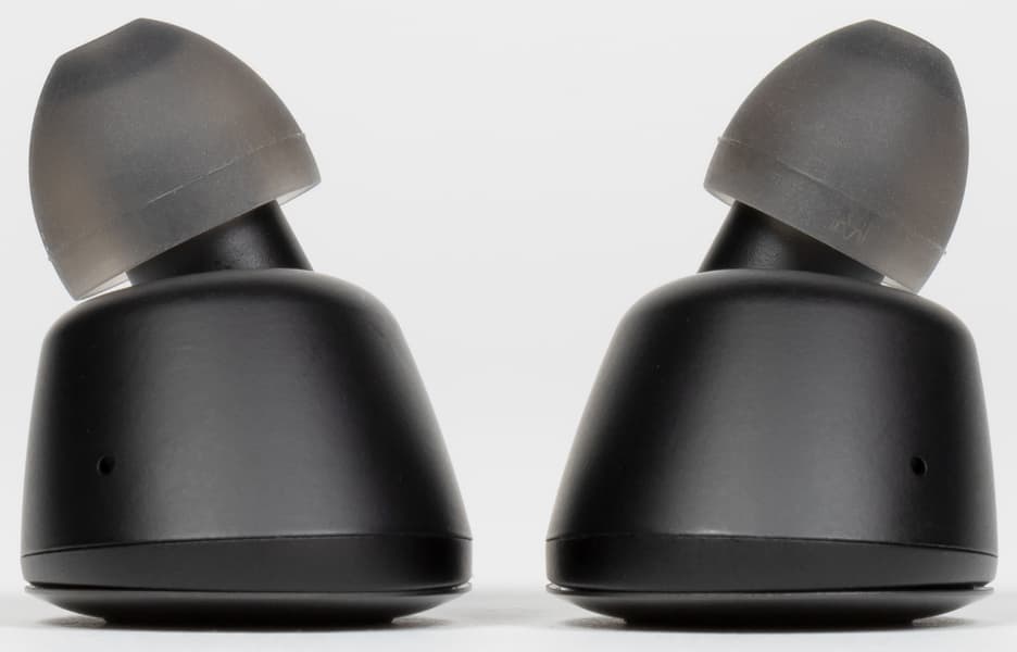 Звуководы расположены как бы сверху над корпусом и выходят из него под сравнительно большим углом. Рядом с ними виднеются отверстия, за которыми скрываются микрофоны, обеспечивающие работу функции «звуковой прозрачности».