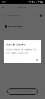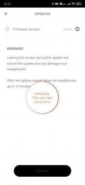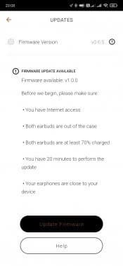 На главном экране отображается заряд каждого из наушников, а вот кейса — нет. Там же можно найти кнопки перехода на страницы с различными опциями и функциями, о которых мы поговорим чуть ниже. А пока идем на страницу настроек, где видим, что для прошивки наушников есть обновление — им и займемся в качестве финальной стадии подключения. Перед началом процедуры приложение предупреждает, что надо запастись временем и терпением — процесс занимает около 20 минут. Примерно столько и получилось при тестировании, так что да — этот нюанс стоит иметь в виду.