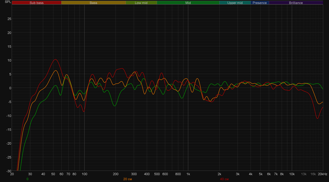 Примерно также обстоит дело и с вертикальным размещением — подъем микрофона над колонками приводит к акцентам на басе за счет отражений от окружающих поверхностей, но назвать его критичным все же сложно — все вполне в рамках разумного.