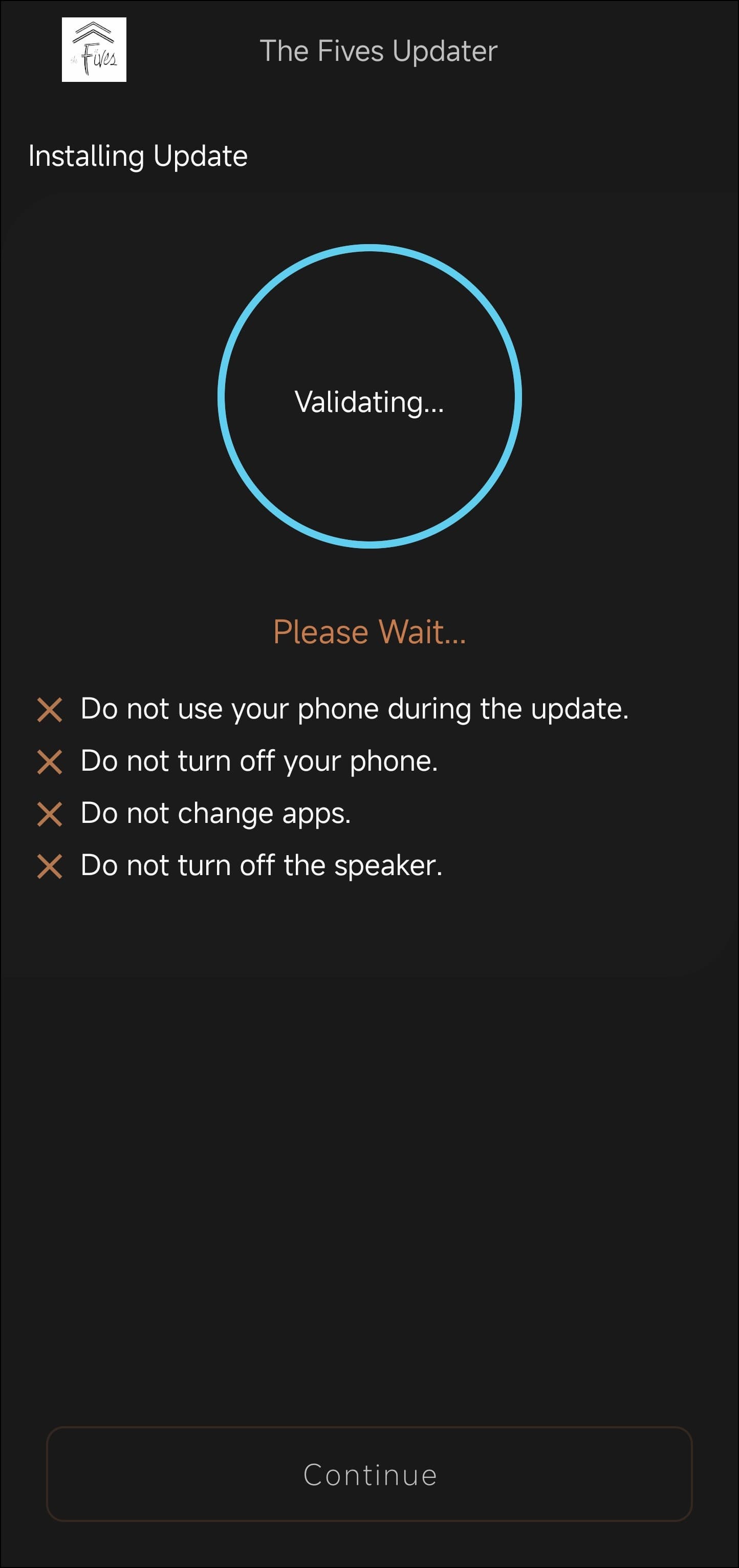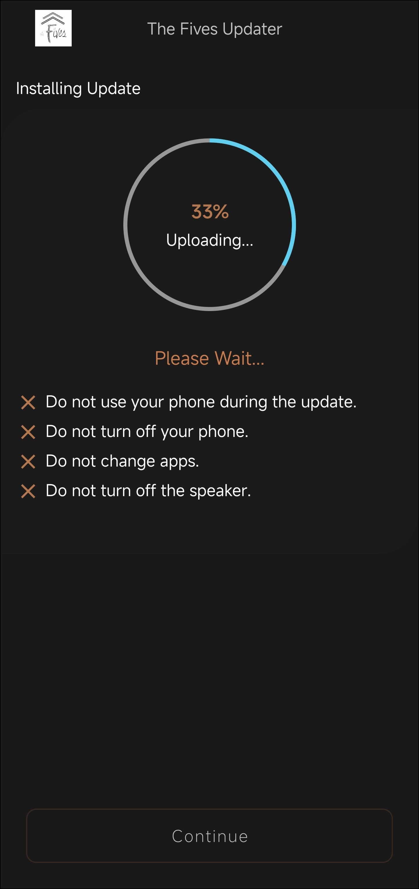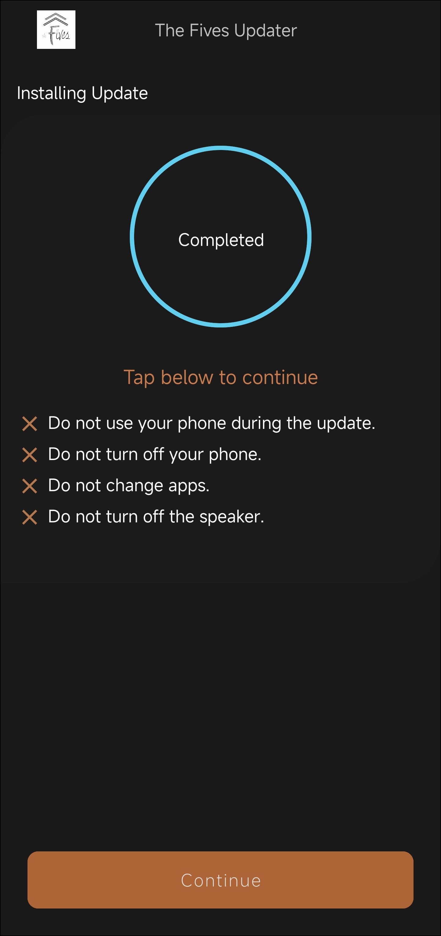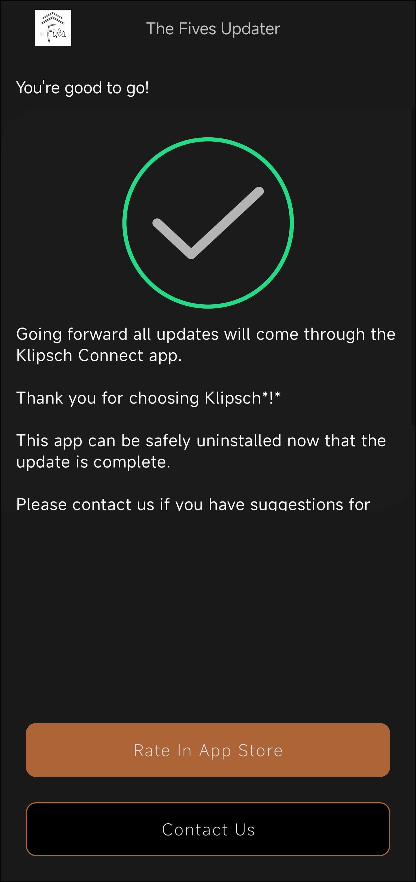 Установка прошивки занимает около двух минут, все это время индикаторы на панели сверху попеременно мигают, как только процесс завершен, загорается индикатор активного входа. Возвращаемся в Klipsch The Fives Updater, далее работаем с ним. ПО скачивает еще один пакет обновлений и передает его на устройство.