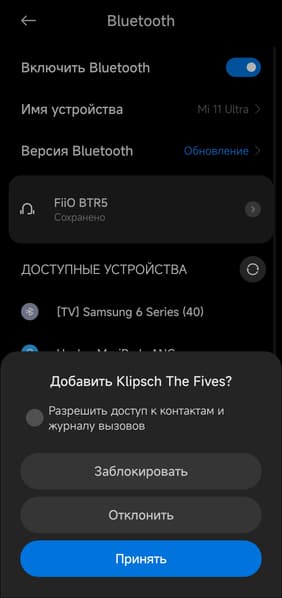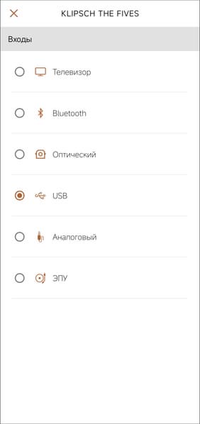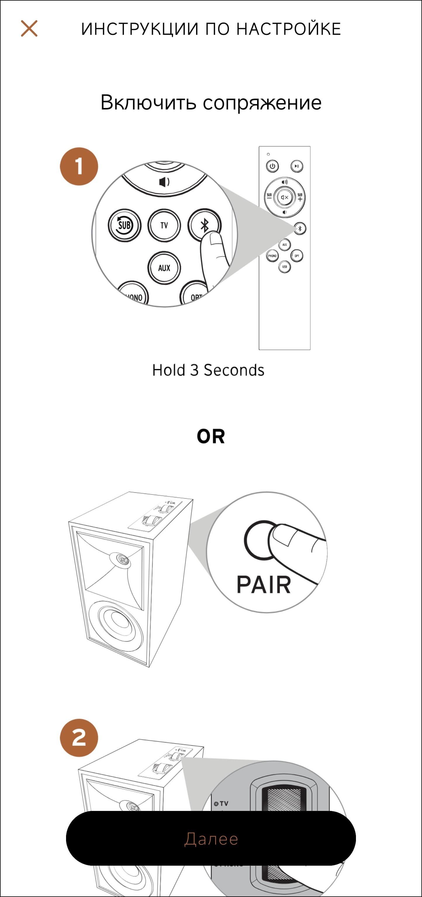 Для беспроводного подключения достаточно нажать кнопку Pair, после чего найти Klipsch The Fives в соответствующем меню гаджета-источника звука.