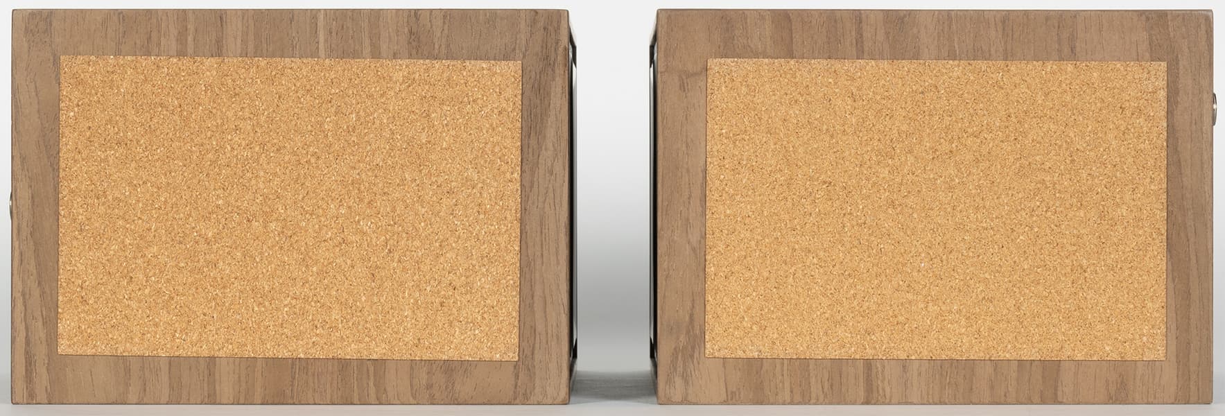 На дне колонок находятся крупные пробковые накладки, которые призваны бороться с нежелательными вибрациями.