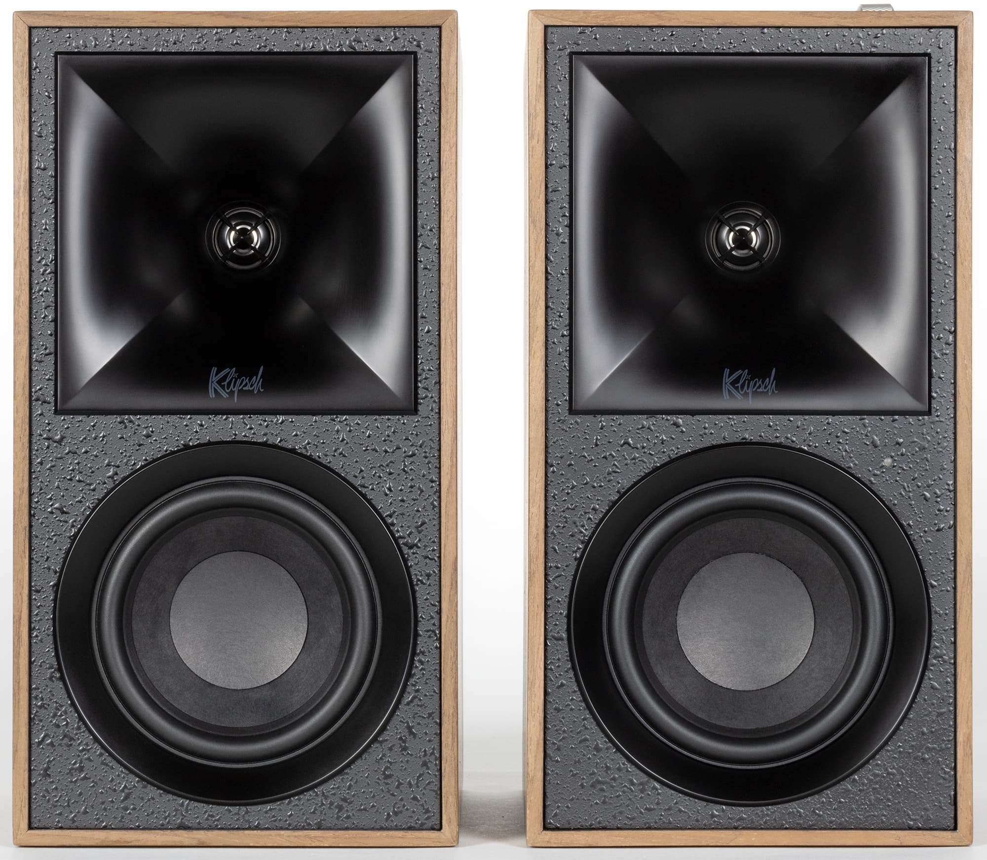 Наиболее эффектно Klipsch The Fives смотрятся вообще без грилей — рупор сверху, открытый динамик снизу и интересная фактура передней панели создают очень притягательный образ.