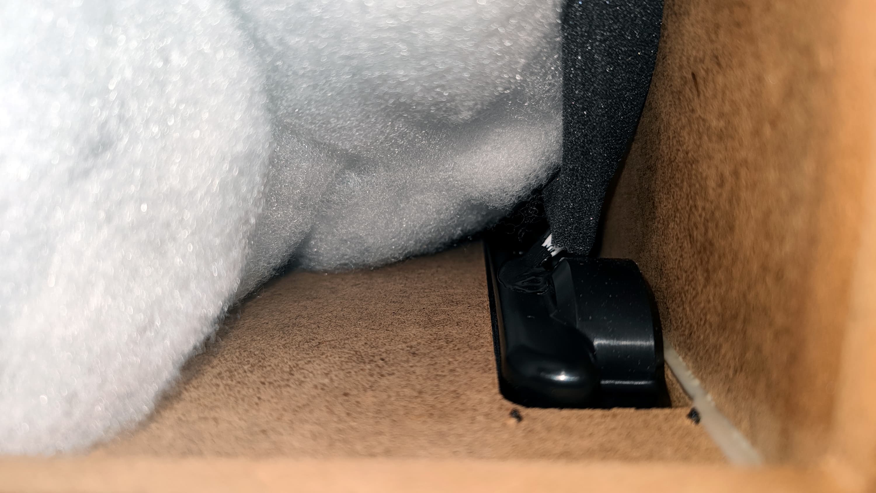 В верхней части виднеется основание пульта управления. Корпус сделан из плотного и прочного MDF толщиной 6 мм, стыки изнутри аккуратно проклеены — в общем, к качеству сборки никаких вопросов.