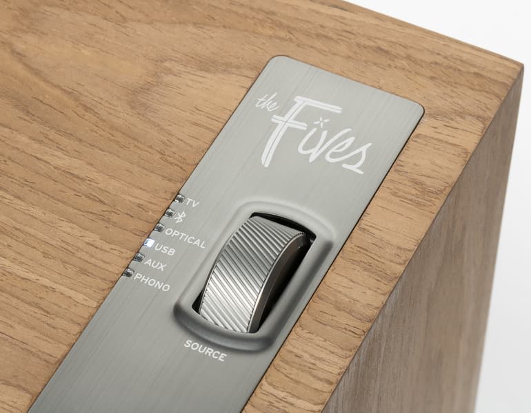 Аналоговый вход на RCA-разъемах может использоваться как для получения линейного сигнала, так и для подключения винилового проигрывателя — в акустике есть встроенный фонокорректор. Есть и вход Aux через миниджек. Цифровые варианты подключения представлены оптическим S/PDIF и USB — собственный ЦАП в Klipsch The Fives тоже имеется. Даже Bluetooth-подключение предусмотрено, причем с поддержкой «продвинутых» кодеков.