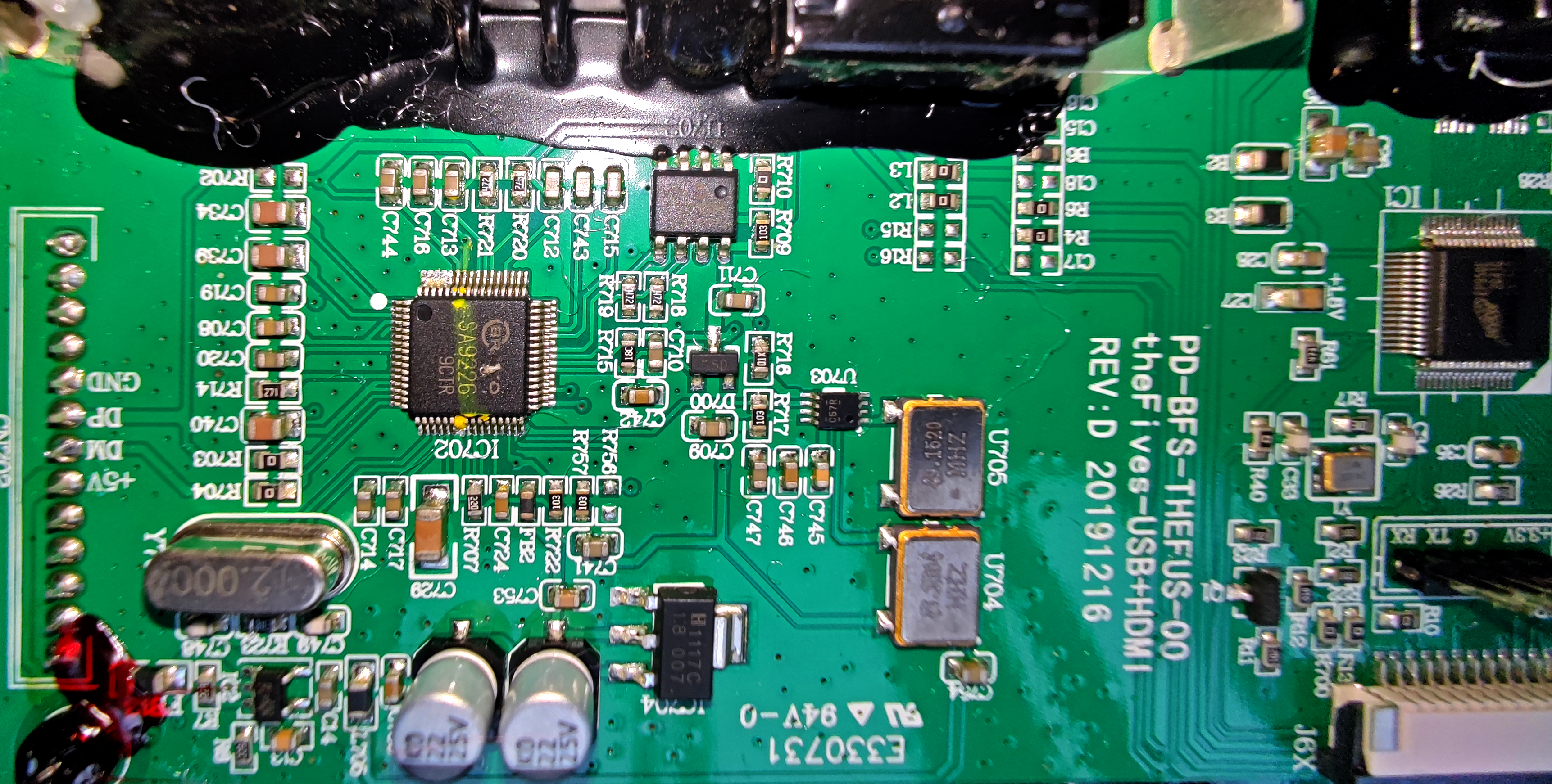 Слева размещен контроллер потоковой передачи аудио посредством USB — Savitech SA9226, справа — служащий для организации HDMI-подключения EP950E.