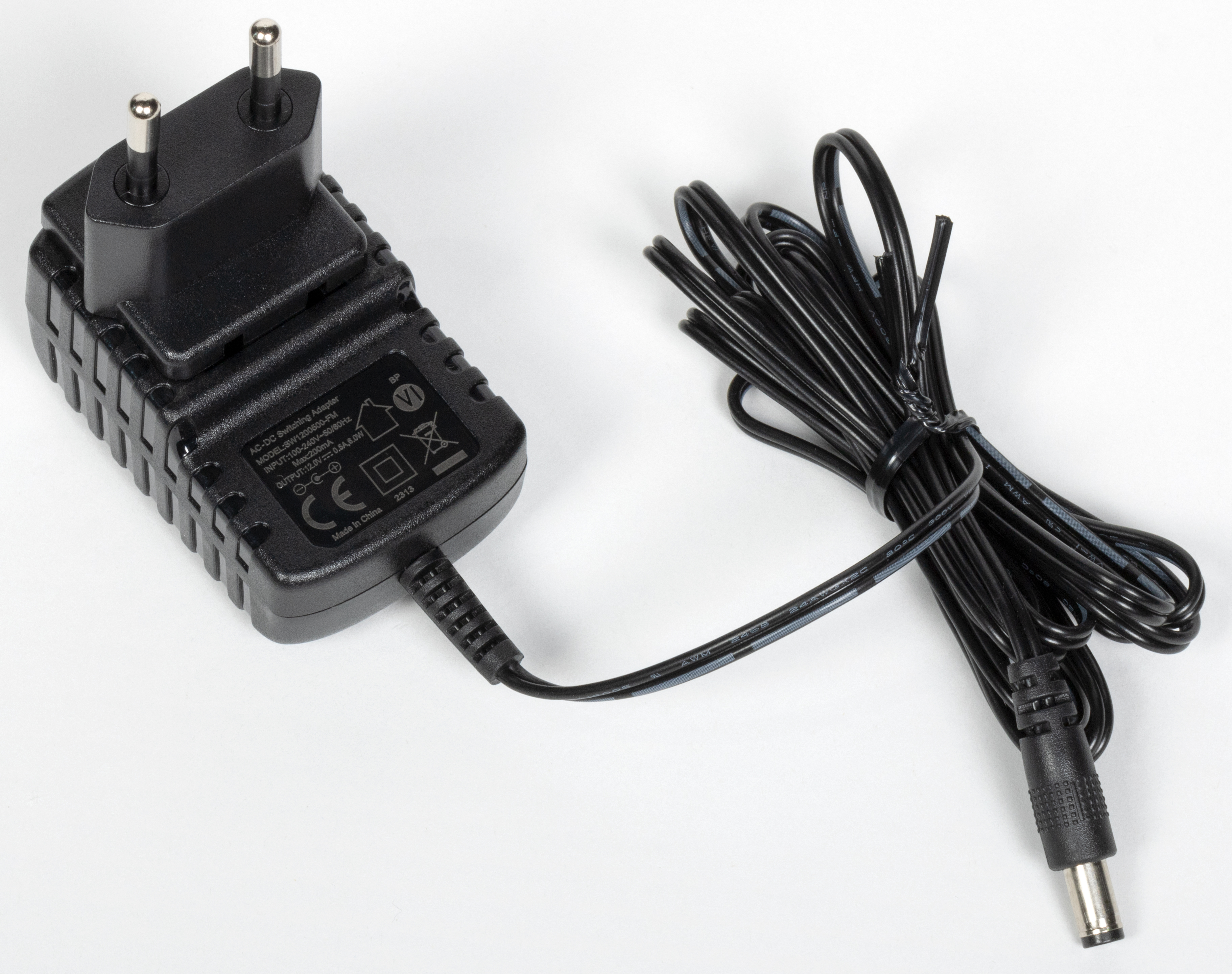 Блок питания комплектуется сменными вилками, позволяющими использовать его в разных странах. Технические характеристики можно увидеть на фото ниже, длина кабеля — 1,8 метра.