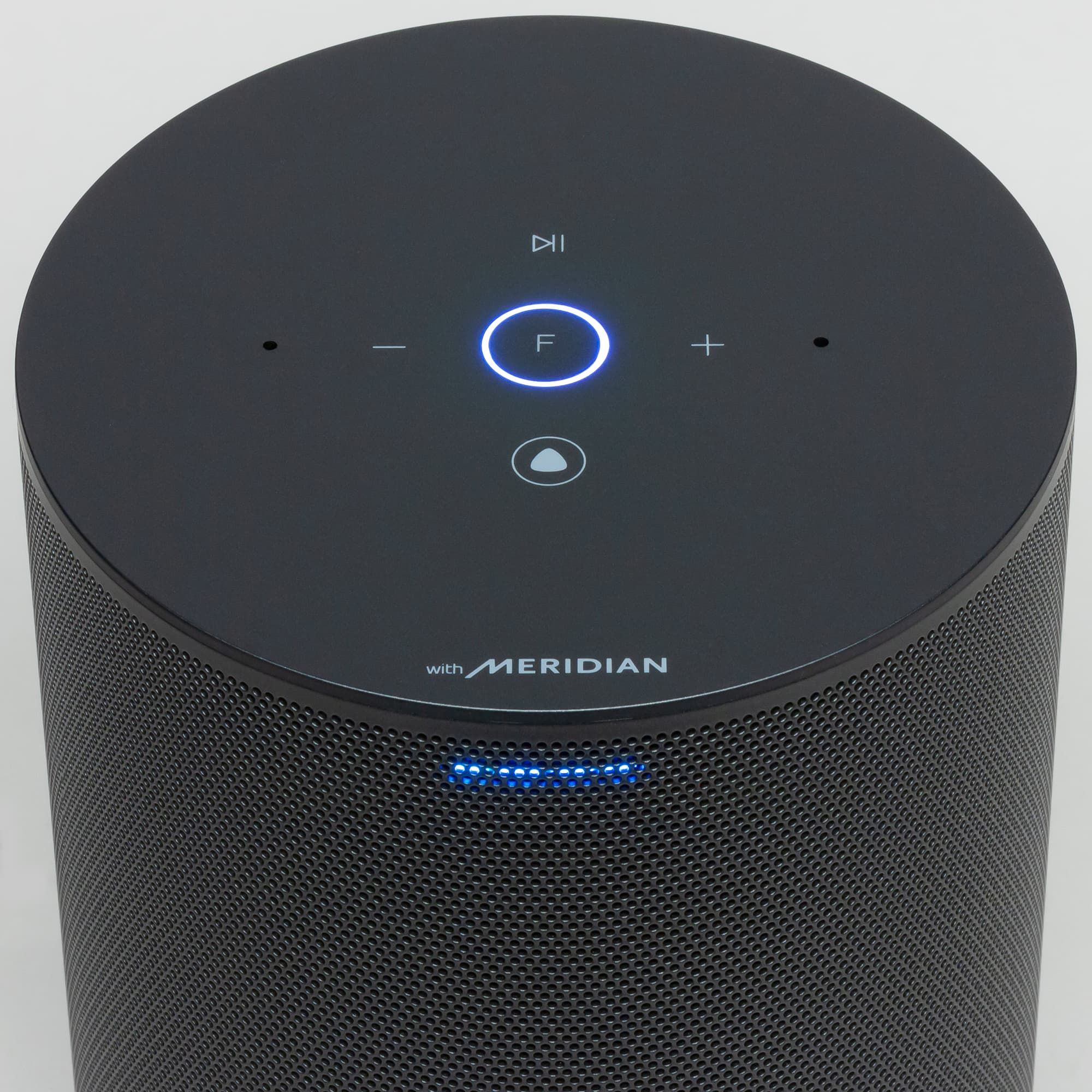 На верхней поверхности устройства расположена панель управления из пяти кнопок. Две боковые управляют уровнем громкости, верхняя — воспроизведением, нижняя — вызовом голосового помощника. Центральная кнопка оснащена подсветкой и служит для переключения функций, в частности — активации Bluetooth-режима.