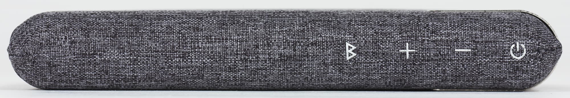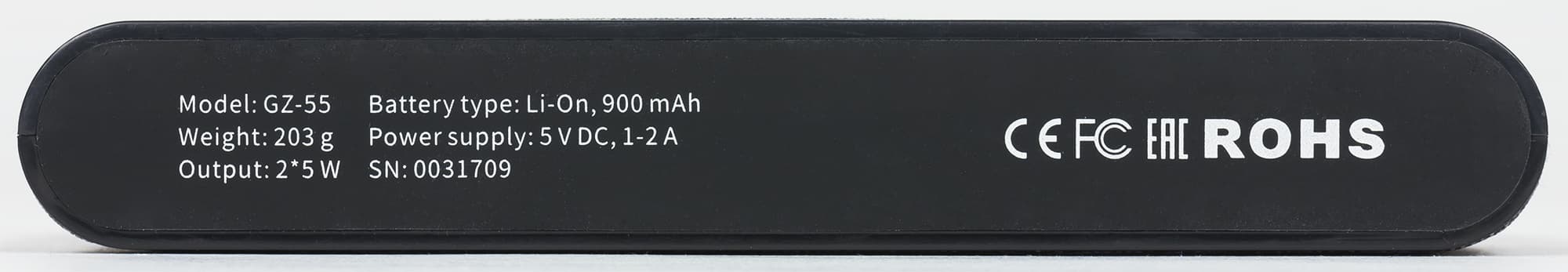 В правой части верхней грани GZ-55, под слоем ткани, находятся кнопки управления колонкой: клавиша активации/сброса Bluetooth-соединения, клавиши управления громкостью и клавиша включения устройства. Ход кнопок уверенный, щелчок ощутимый. Единственная претензия к ним — при активной эксплуатации могут стереться обозначения, нанесенные на ткань.