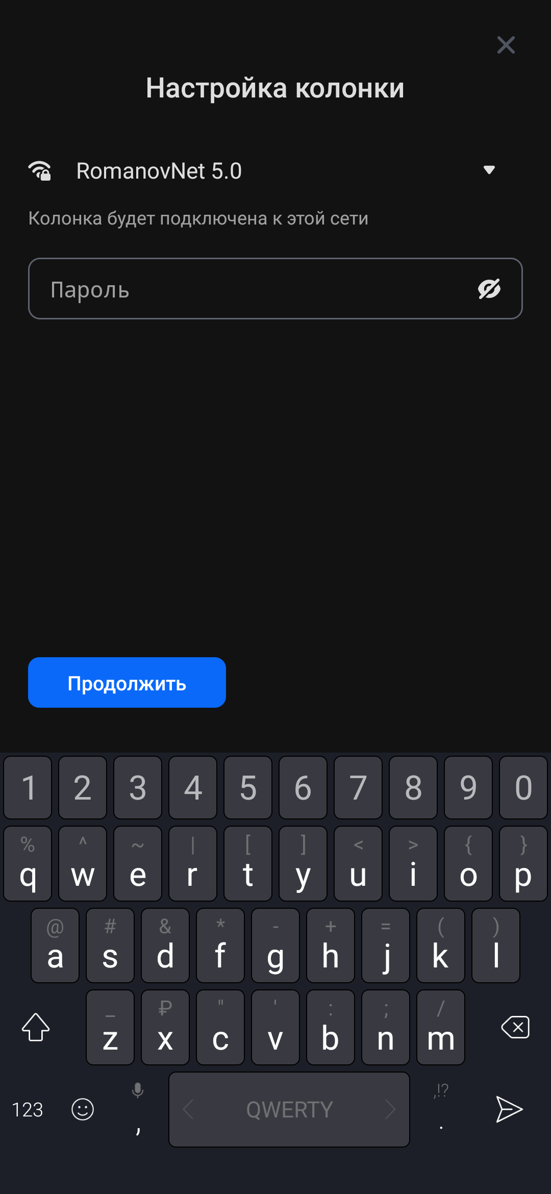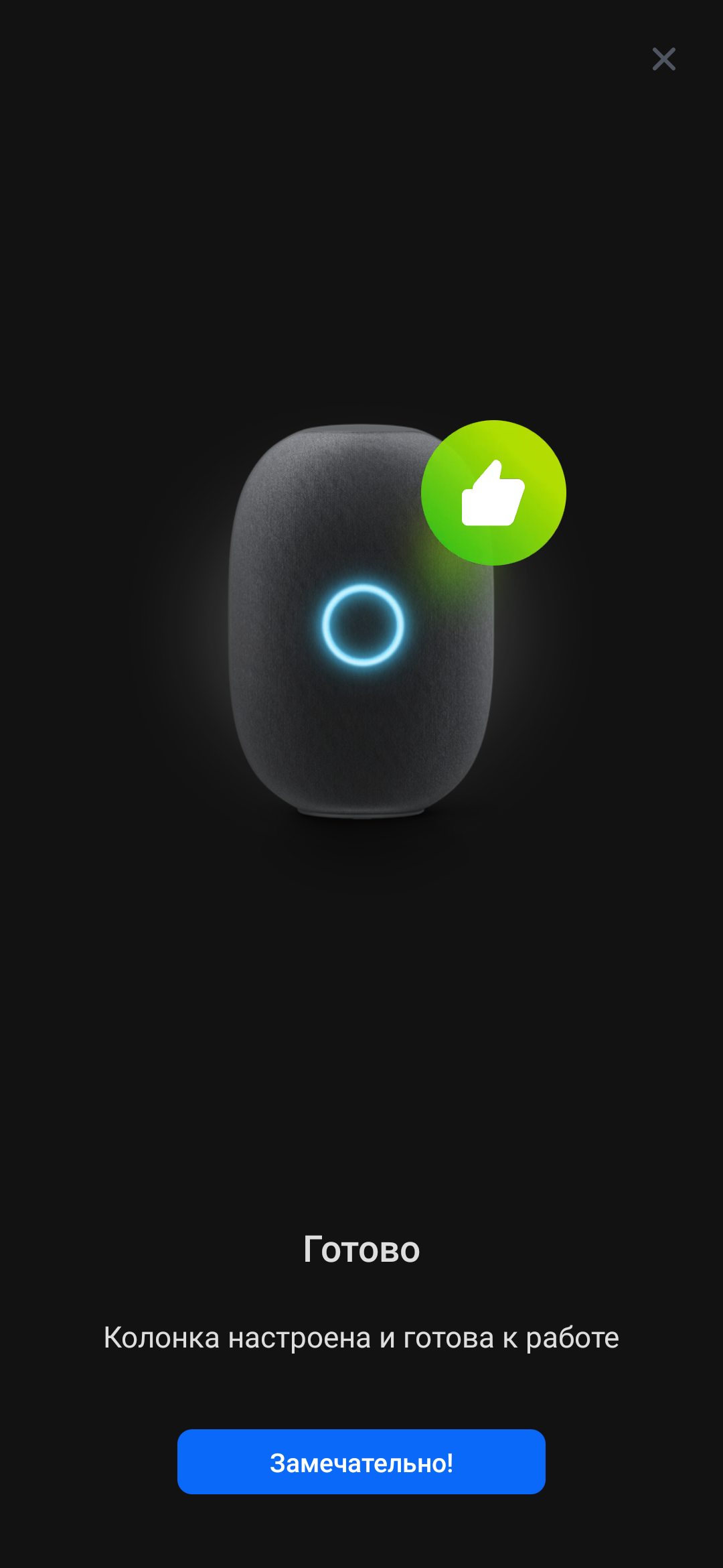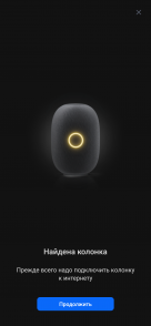 После авторизации мы получили возможность продолжить настройку. Приложение быстро нашло колонку и предложило подключить ее к сети. После ввода пароля соединение заняло примерно 15 секунд, по истечении которых система отрапортовала о том, что все прошло хорошо.