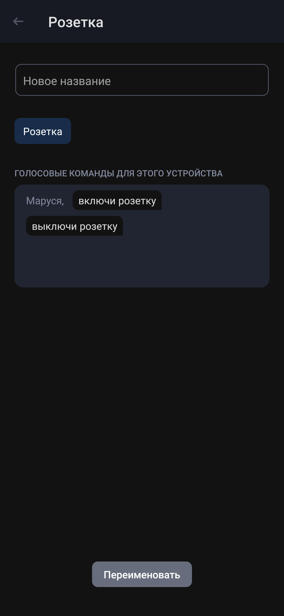 После этого розетка появляется в меню «Умный дом», откуда ее можно включать и выключать. Там же устройство можно переименовать и увидеть список доступных команд уже с текущим именем. В случае с розеткой команд всего две, но у Redmond есть и другие устройства, поддерживающие удаленное управление — от чайников до обогревателей. «Продвинутых» возможностей управления, таких как создание сценариев, «умный дом» Mail.ru на данном этапе не поддерживает — вероятно, они появятся в будущем.