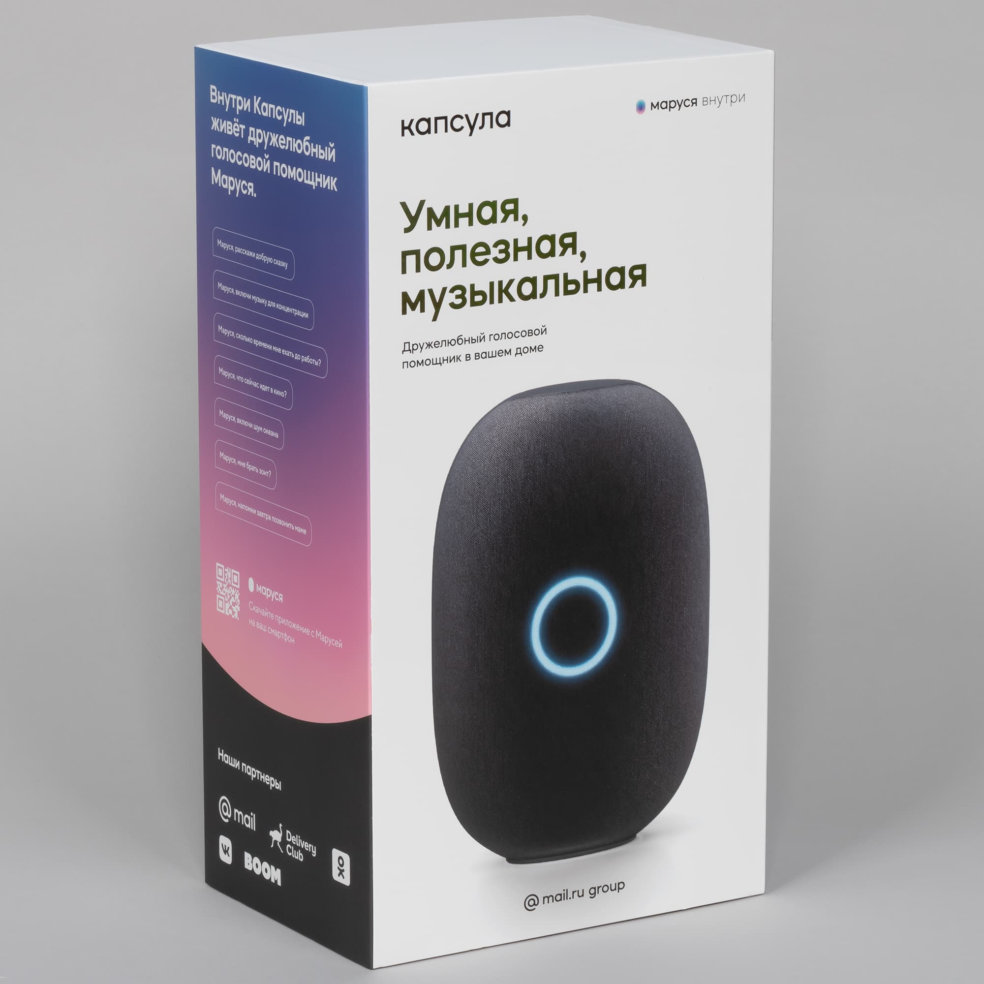 Развитием этого направления компания занимается весьма активно: помимо собственных колонок «Яндекса» — «Яндекс.Станции» и «Яндекс.Станции Мини», — Алиса присутствует в решениях LG, Dexp, Elari, Irbis и Prestigio. В общем, жизнь на рынке смарт-колонок кипит, причем не первый день. И вот в этот весьма давно отправившийся поезд на полном ходу решила запрыгнуть Mail.ru Group, которая представила собственную голосовую помощницу по имени Маруся, а вместе с ней — и ее «жилище»: колонку под названием «Капсула». Как минимум, устройство получилось довольно оригинальным. Попробуем разобраться, что же оно готово предоставить пользователям.