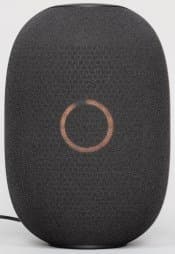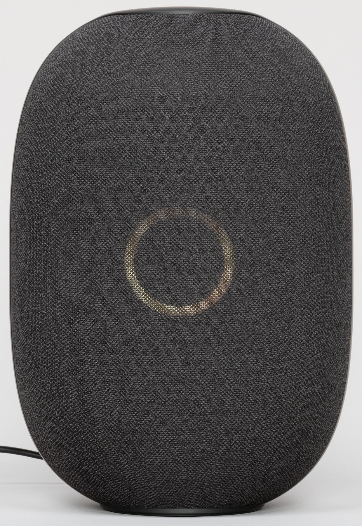 Внешним оформлением колонка Mail.ru не похожа ни на кого из «коллег», формой она вполне оправдывает название «Капсула». Внешняя часть корпуса почти полностью обтянута тканью, на передней панели расположен крупный круговой индикатор. Выглядит устройство оригинально и интересно, но при этом не привлекает к себе лишнего внимания и будет вполне уместно практически в любом интерьере. Вариантов расцветки анонсировано два: черный и светло-серый, у нас на тесте был первый.