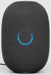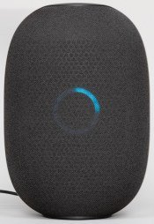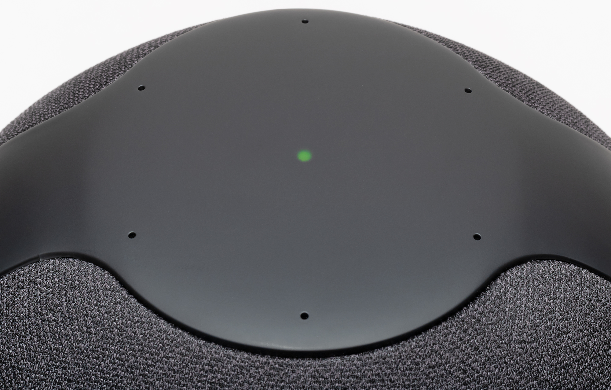 На верхней части корпуса расположена сенсорная панель, служащая для управления устройством. О ней мы чуть подробнее поговорим ниже. Также на панели размещены небольшой светодиодный индикатор и отверстия 6 микрофонов, служащих для общения с голосовым помощником.