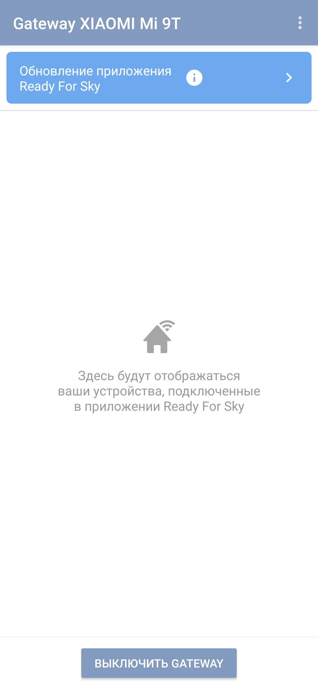 Приложений, как уже упоминалось выше, два: Ready For Sky и RS4 Gateway (это шлюз, обеспечивающий онлайн-управление устройствами, подключенными к смартфону посредством Bluetooth). Ставим оба, запускаем Gateway. Добавляем устройство через его интерфейс, чтобы точно получить возможность управления онлайн. Если сделать это через Ready For Sky, данная функция может не активироваться. Для начала задействуем Gateway.