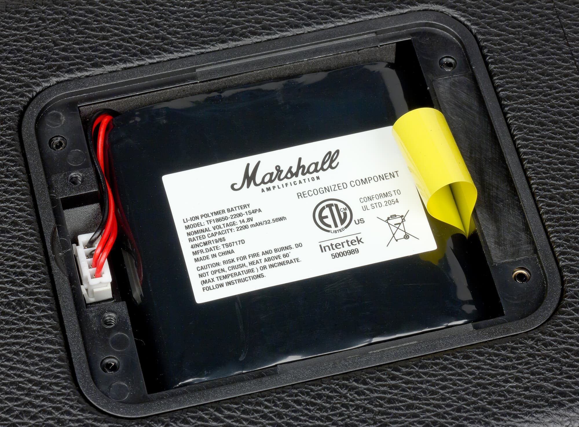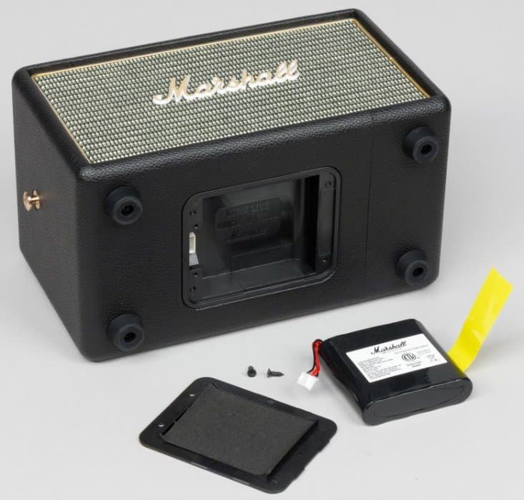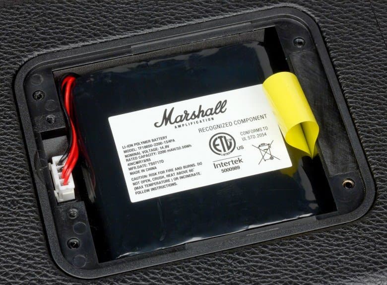 Под крышкой расположен внушительных размеров аккумулятор емкостью в 32,56 Вт·ч со штатным напряжением 14,8 В. Емкость аккумулятора эквивалентна 8800 мА·ч при напряжении в 3,7 В, что позволяет нагляднее сравнивать емкость батареи с другими портативными колонками, данные емкости аккумуляторов которых приводятся, как правило, для значения в 3,7 В. Батарея состоит из четырех литий-ионных аккумуляторов формата 18650 и подключается с помощью четырехконтактного разъема. На правой грани присутствует петля для извлечения аккумулятора без помощи инструментов.
