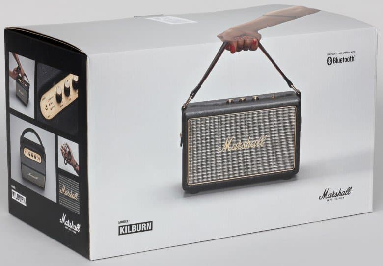 Компания Marshall справедливо рассудила, что что-либо менять — только портить, и, не мудрствуя лукаво, «уменьшила» собирательный образ своих гитарных усилителей до размеров относительно небольшой колонки. Все отличительные признаки настолько узнаваемы, что с непривычки Kilburn легко принять за десятиваттный портативный комбоусилитель. Корпус обтянут черным винилом «под кожу». Гриль на фронтальной поверхности выполнен максимально похоже на тканевую защиту динамиков гитарных кабинетов, однако на ощупь напоминает твердый пластик. В центре расположен пластиковый позолоченный логотип Marshall.