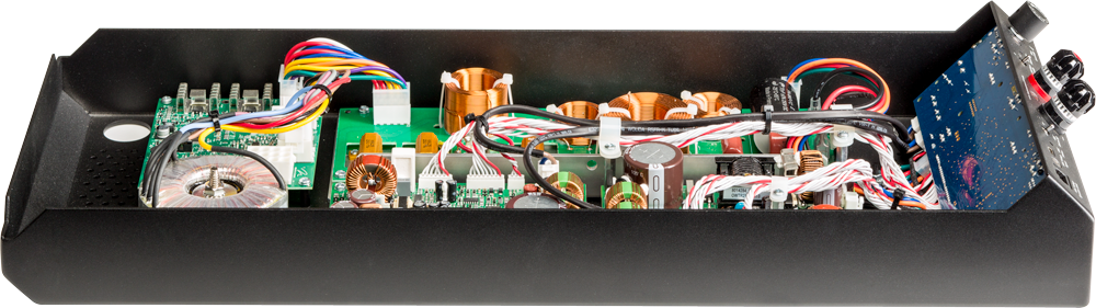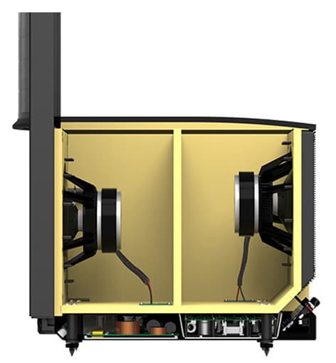 Низкочастотная секция является активной и оснащена двойными 275-ваттными усилителями класса D, управляемыми 24-битным процессором Vojtko DSP, с помощью которого производится настройка уровня низких частот и обеспечивается работа функции ARC — автоматической подстройки под параметры помещения.